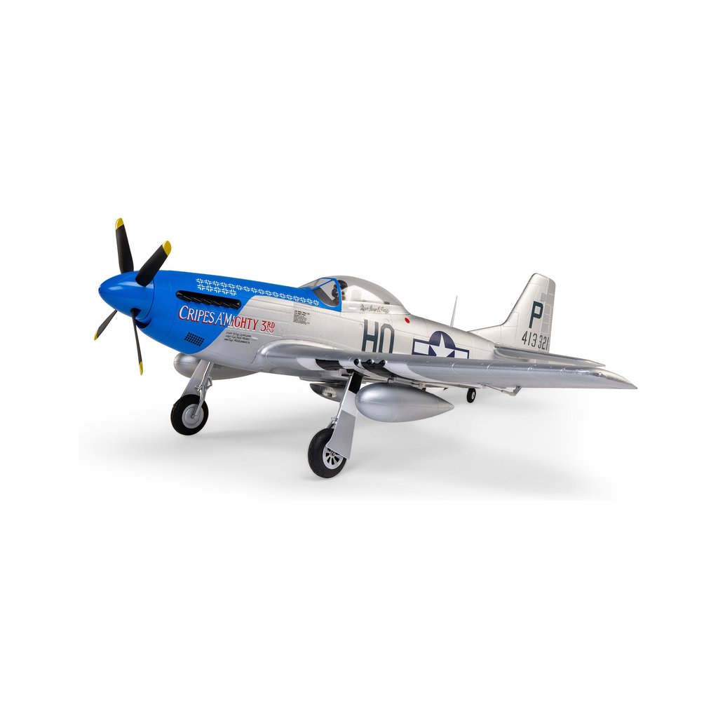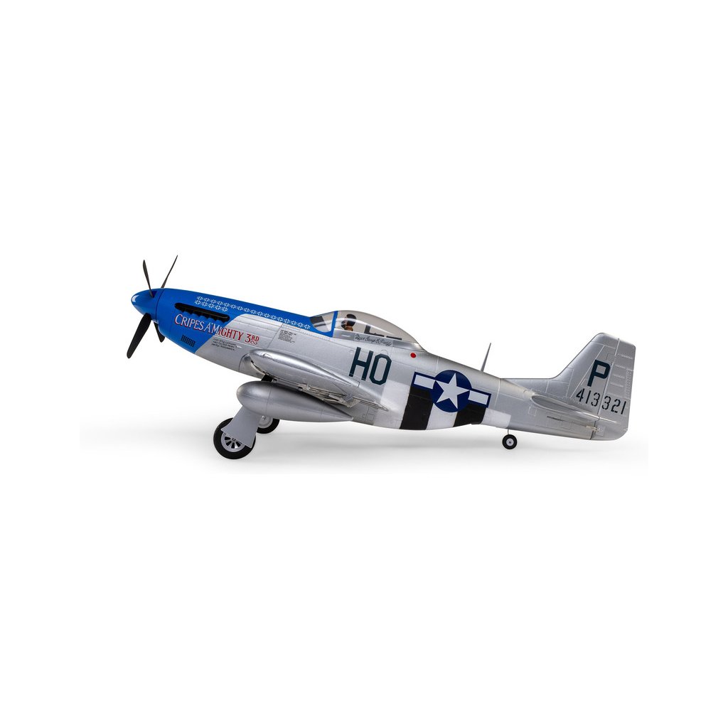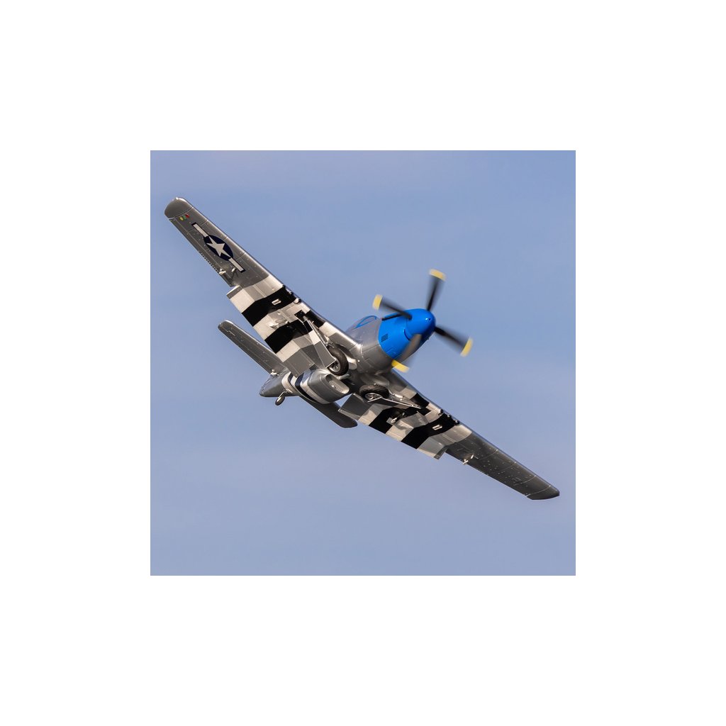 Model E-flite® P-51D Mustang 1.2m má realistické zpracování, přesné tvary, 4-listou vrtuli jako velký vzor, kokpit s pilotem a přístrojovou deskou, maketové panely potahu a maketovou kamufláž “Cripes A’Mighty 3rd”. Nyní můžete mít i více výkonu při použití až 4-článkové LiPol baterie! Střídavý pohon nevyžaduje žádné nastavení. Nadstandardní vybavení funkčními vztlakovými klapkami a elektrickým zatahovacím podvozkem podstatně zvyšuje možnosti využití a v letu navíc vypadá jako skutečné letadlo. Střídavý regulátor 70A Spektrum Avian™ Smart Lite poskytuje v reálném čase napětí baterie, proud, otáčky a další data prostřednictvím kompatibilních vysílačů Spektrum.