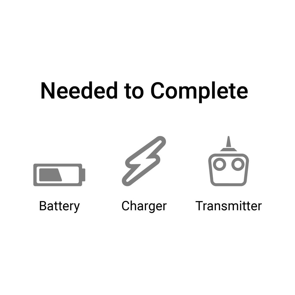 Je potřeba doplnit 6+ kanálový vysílač Spektrum DSM2®/DSMX, LiPol baterii 2200–3000 mAh 3–4S s konektorem EC3, vhodný nabíječ.
