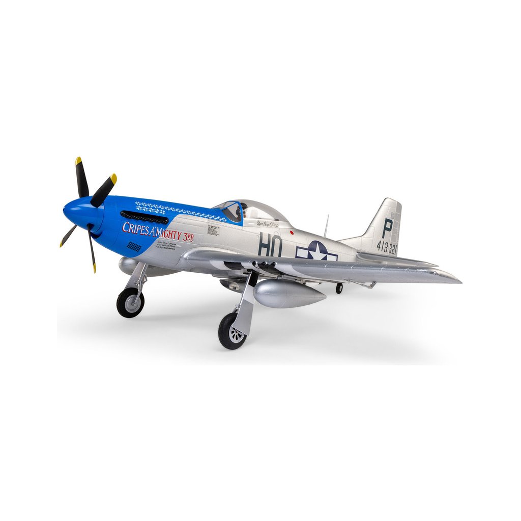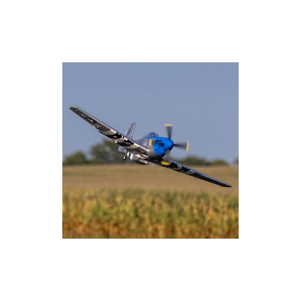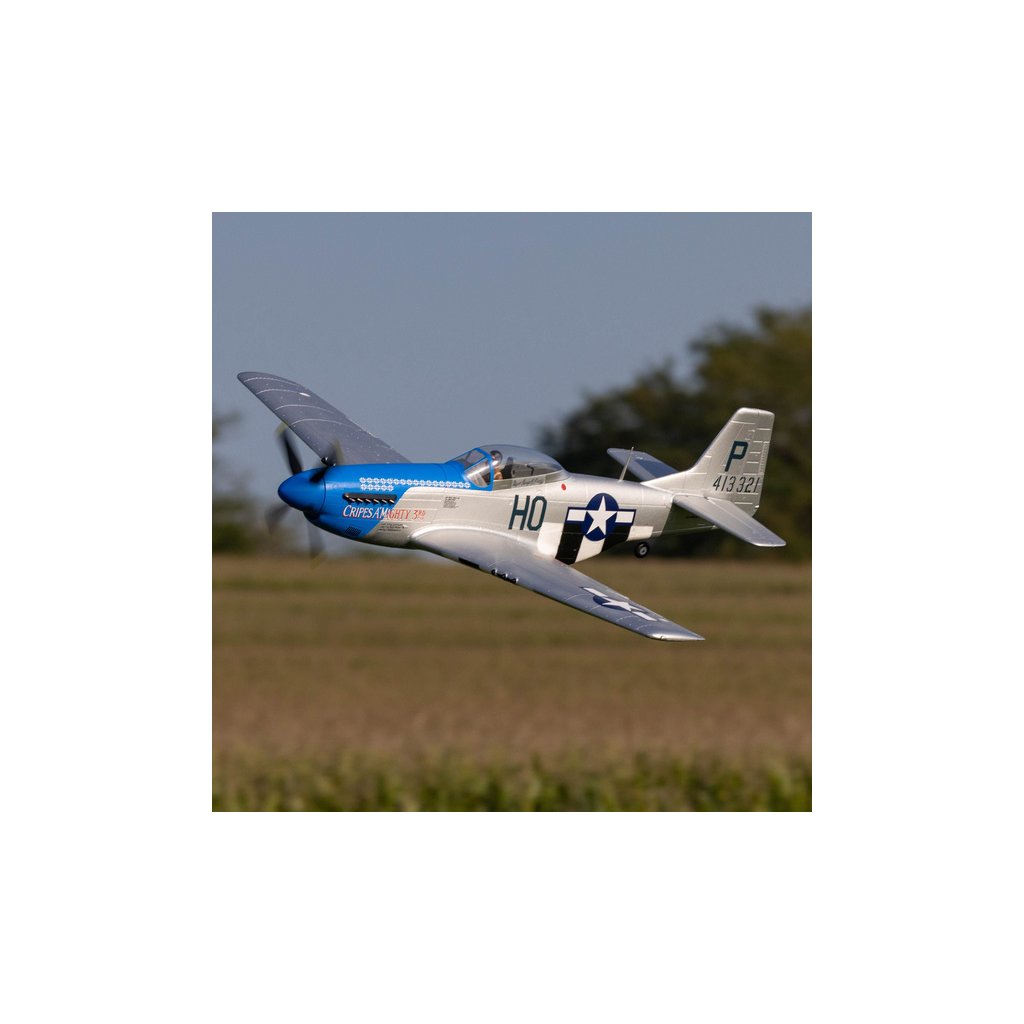 RC model legendární americké stíhačky P-51D Mustang o rozpětí 1,2m, s elektrickým zatahovacím podvozkem, nainstalovanými vztlakovými klapkami, střídavým pohonem pro 3-4S LiPol, novým regulátorem Spektrum™ Avian™ 70A Smart Lite a přijímačem Spektrum s AS3X a volitelnou funkcí SAFE Select. Osvědčená lehká pěnová konstrukce EPO a autentické zbarvení “Cripes A’Mighty 3rd”.