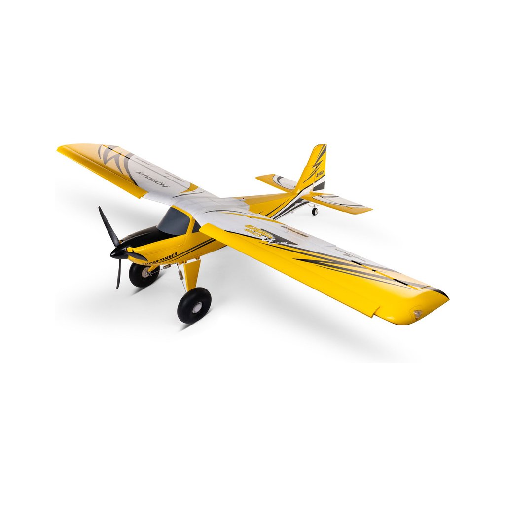 RC model letadla E-flite Super Timber o rozpětí křídla 1.7m, ve verzi BNF Basic.. Je vybaven LED osvětlením a výkonným střídavým pohonem pro 4S-6S LiPol baterie, elektronikou s telemetrií a funkcí AS3X a volitelnou funkcí ochrany letové obálky SAFE pro snadné létaní. Odolný podvozek s nafukovacími pneumatikami a odpružený podvozek pro létání na různých površích a klapky a sloty pro vlastnosti STOL. Montáž je snadná, bez použití nářadí a šroubů s Hands-free připojením. I když je model kompletně vybaven pro provoz, budete potřebovat 7+ kanálový vysílač Spektrum DSMX®/DSM2®, LiPol baterii 4S 14.8V - 6S 22.2V 3200–5000mAh s konektorem IC5 nebo EC5 a kompatibilní nabíječ.