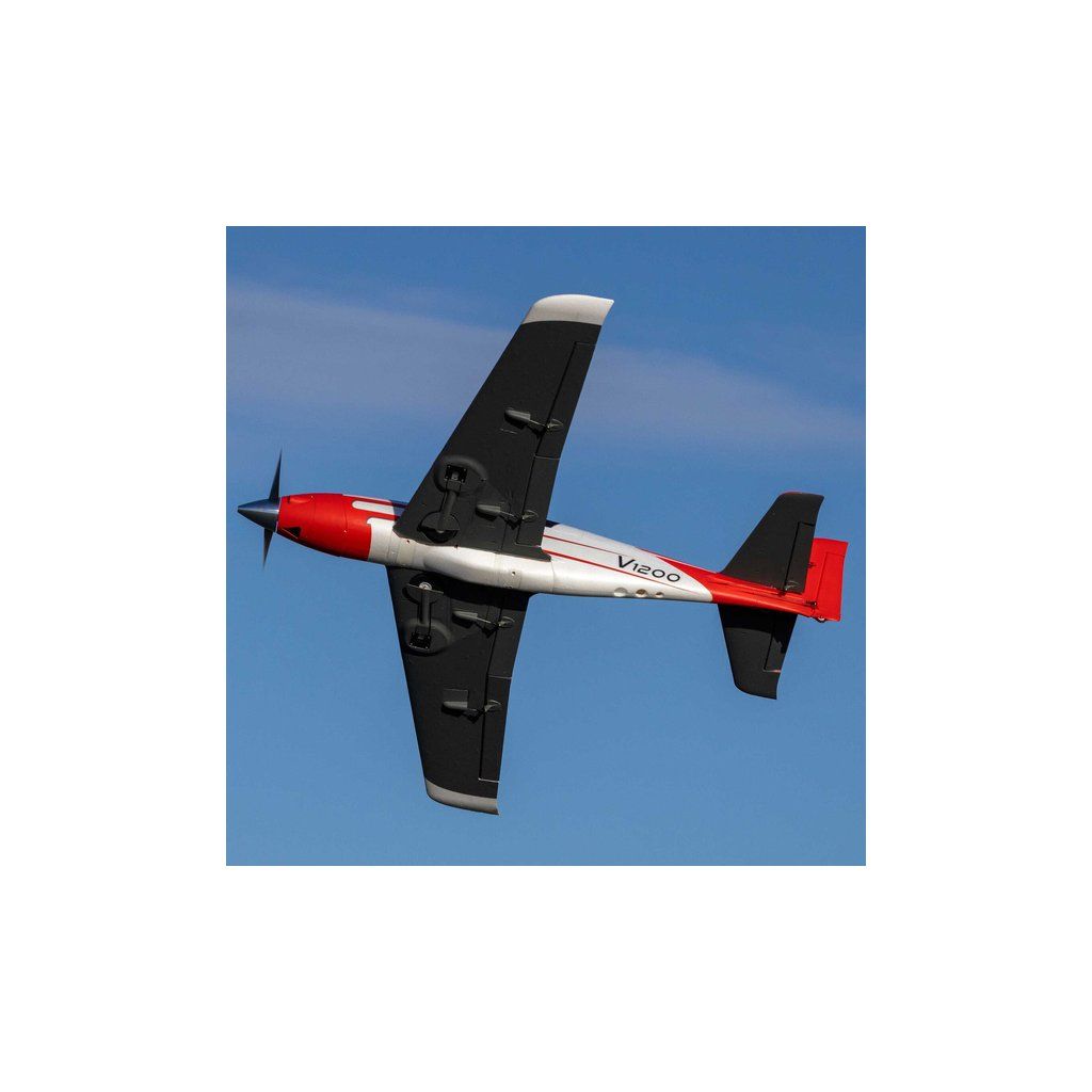 RC model letadla pro milovníky adrenalinu E-flite V1200 V2 1.2m, patří s maximální rychlostí až 220km/h mezi nejrychlejší RC letouny. Inovovaná koncepce modelu nabízí větší a odolnější mechanismus zatahovacího podvozku pro start a přistání i z mírně nerovných povrchů, výrazné zbarvení pro dobrou viditelnost a nejnovější elektroniku Spektrum se stabilizací AS3X+, SAFE a telemetrií SMART. Kromě elektrického zatahovacího podvozku model nabízí také vztlakové klapy pro start, přistání a pomalé průlety. Už s akumulátorem 4S (14,8V) LiPo dosáhne model rychlost až 170 km/h a když použijete 6S (22,2V) LiPo můžete atakovat až rychlost 220 km/h (akumulátor se prodává samostatně)!