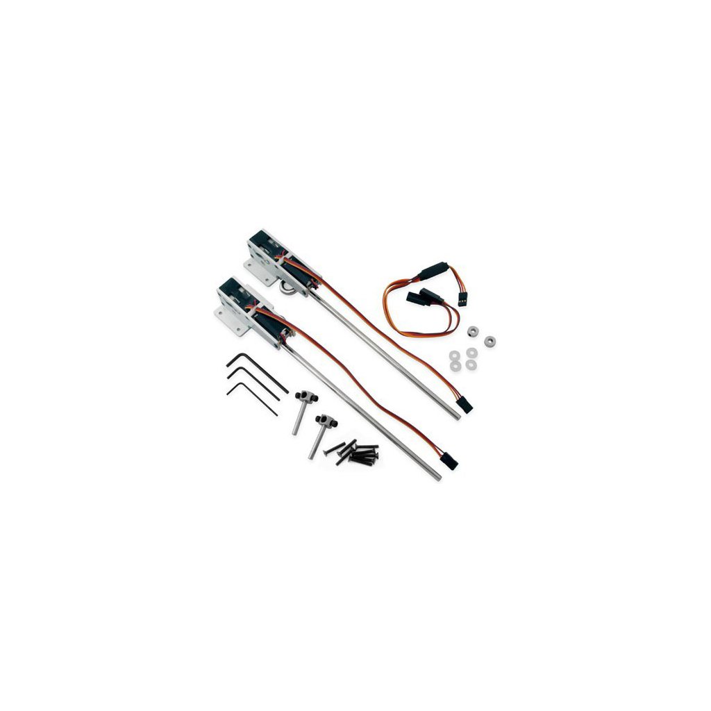 Zatahovací podvozek s elektrickým zasouváním a vytažením a jednoduchou montáží. Obsahuje kabeláž a montážní příslušenství. Už to nemůže být jednodušší, pouze přišroubujete do křídla a zapojíte k obsaženému Y kabelu.