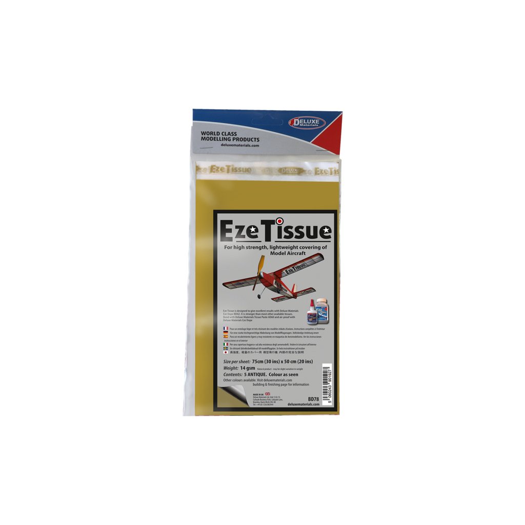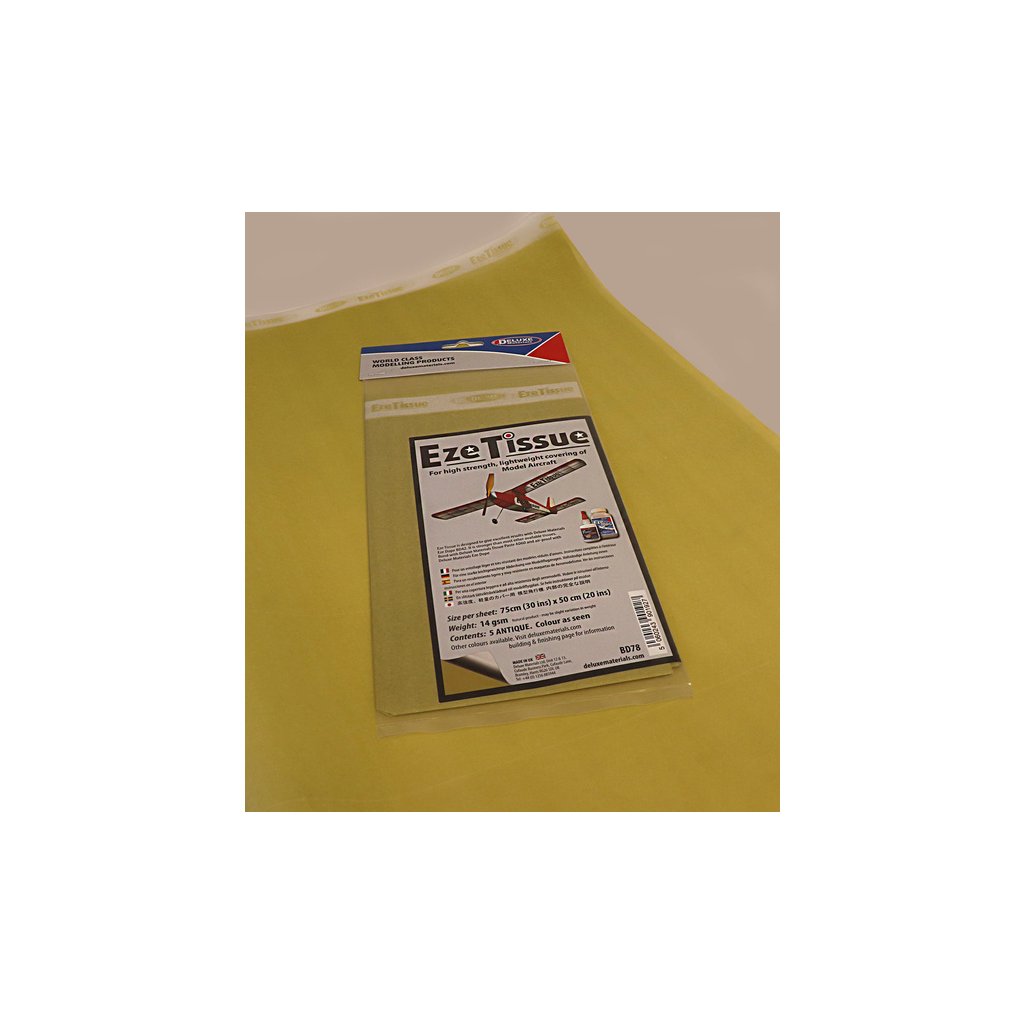 Eze Tissue potahovací papír 14 g/m², rozměry 75x50 cm, antik (5 archů v balení). Potahový papír je vhodný pro volné modely, retro historické a školní kluzáky, pro kroužky apod.