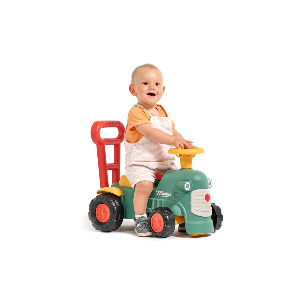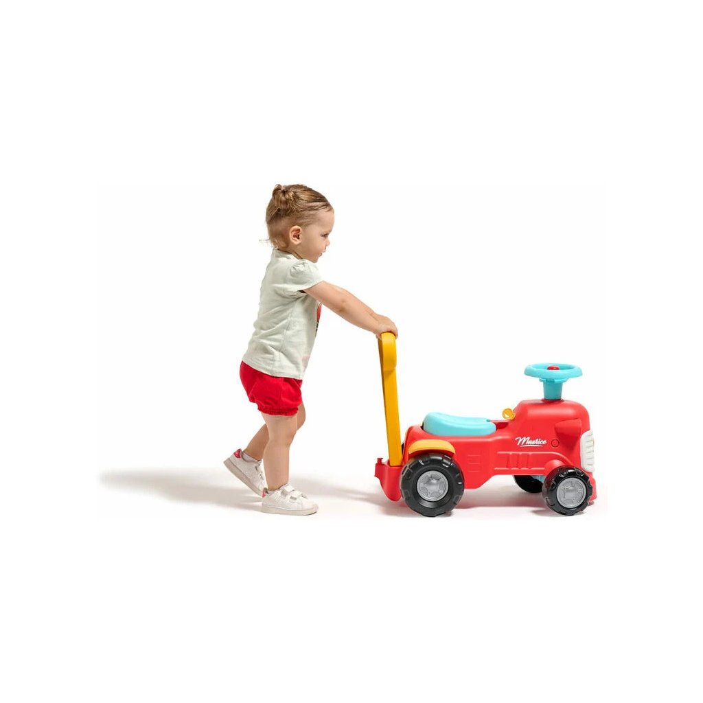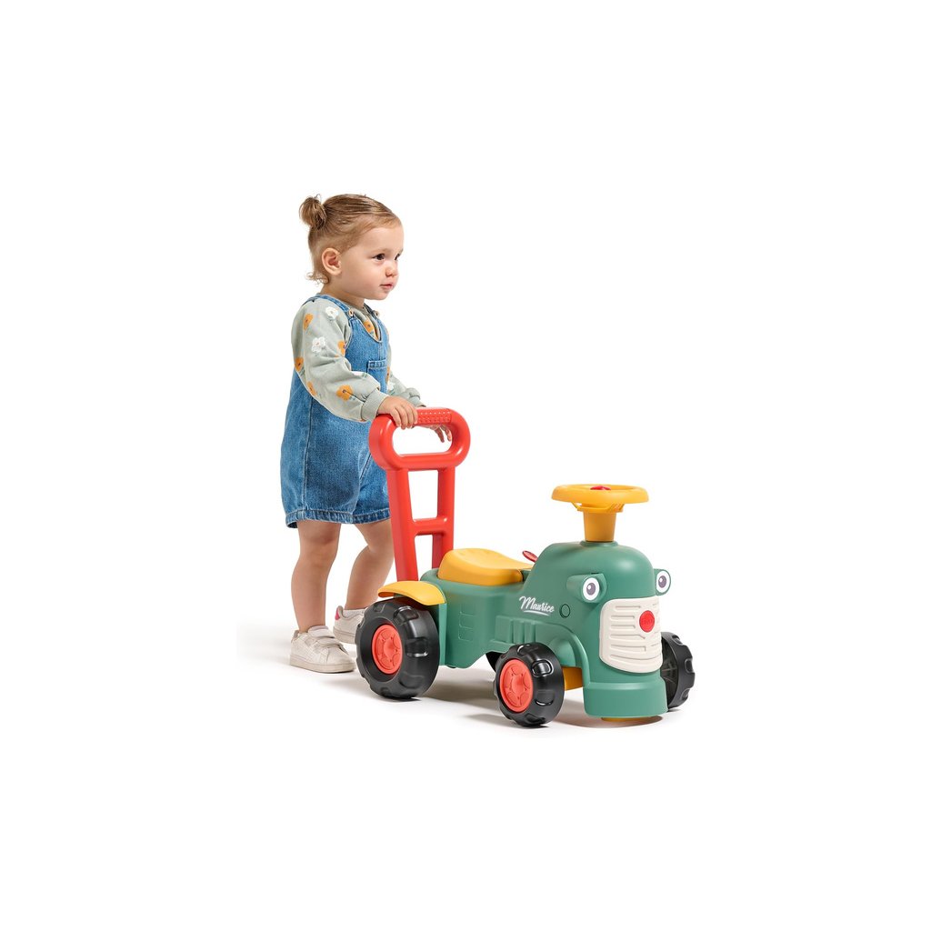 Dětské odrážedlo a chodítko 2v1 - Maurice od francouzského výrobce FALK. Odrážedlo má design klasických starých traktorů (Vintage vzhled). Díky madlu v zadní části jej může dítě využít jako oporu při chůzi. Je vyrobeno z vysoce kvalitního a odolného plastu s ohledem na bezpečnost dětí. Obsahuje otevírací sedátko s úložným prostorem, funkční klakson na volantu a otočnou přední nápravu volantem. Kvalitní nálepky dotvářejí vzhled odrážedla. Pro děti od 1 roku.