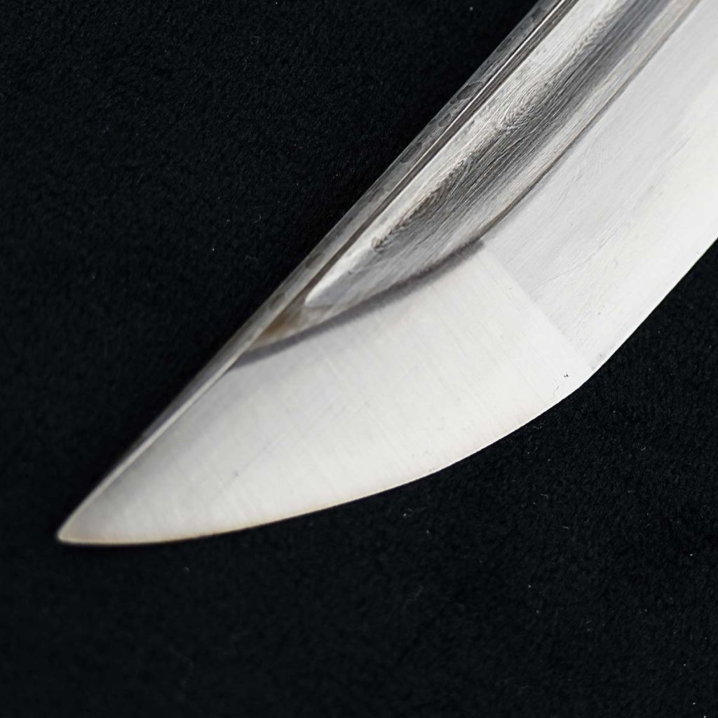 Hrot čepele typu Chu-Kissaki je doplněn o Diamond Shaped Yokote, které prochází hamonem až k hrotu (boshi). Geometrie Sori (zakřivení) je optimalizována pro plynulý a čistý řez. Tato replika katana je plně rozebíratelná díky zajištění dvěma bambusovými kolíky (mekugi).