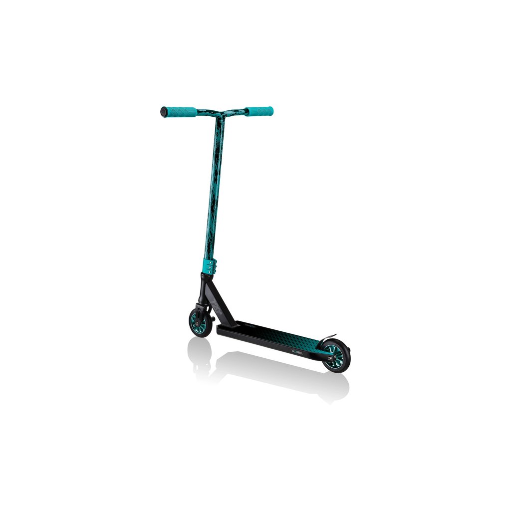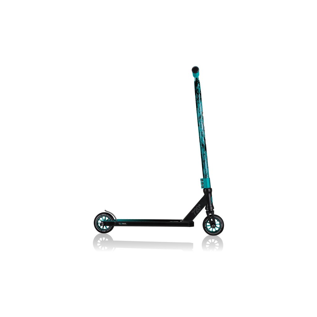 Koloběžka Globber - GS 720, pro děti od 8 let, teenagery a dospívající, kteří se kromě jízdy chtějí naučit freestylové triky. Přední vidlice vyztužená ocelí, trojitá spona řídítek, kvalitní kolečka 110 mm s tvrdostí 88A PU, hliníkové jádro a špičková ložiska 680ZZ ABEC 7, stupačky.