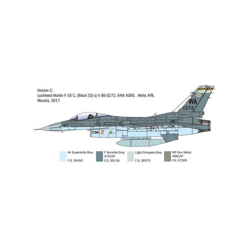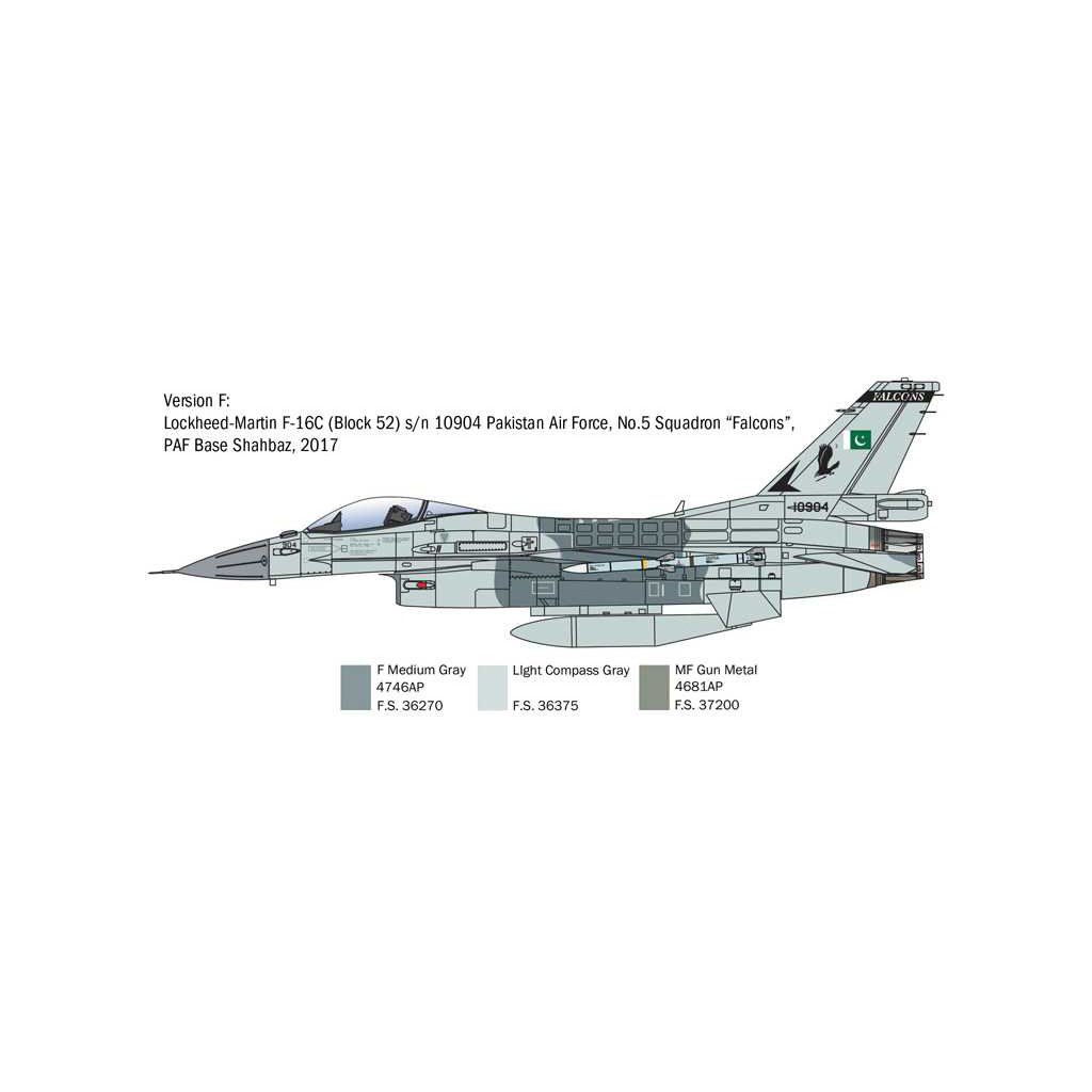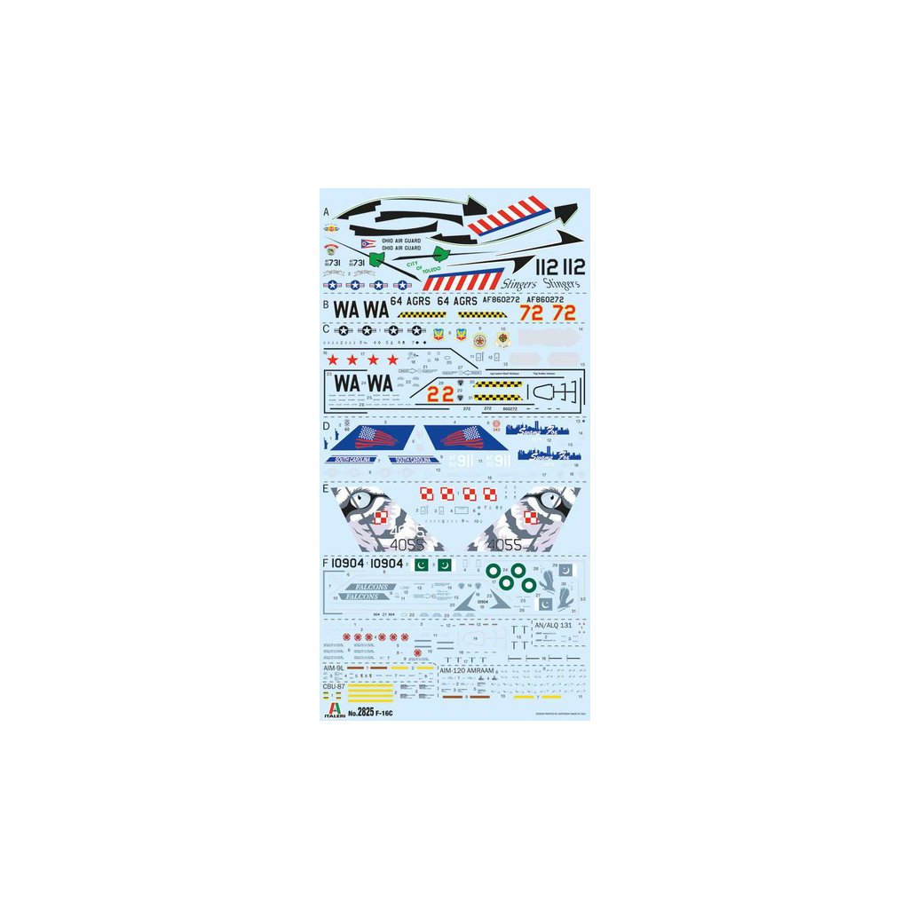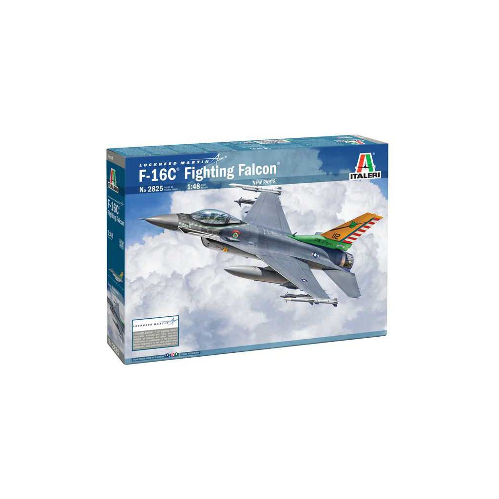 Plastikový model Italeri 2825 - letadlo General Dynamics F-16C Fighting Falcon v měřítku 1:48 ke slepení. Délka modelu 315 mm, obtížnost 3. Balení obsahuje skvelé obtisky pro 6 verzí.
