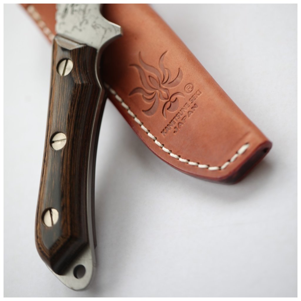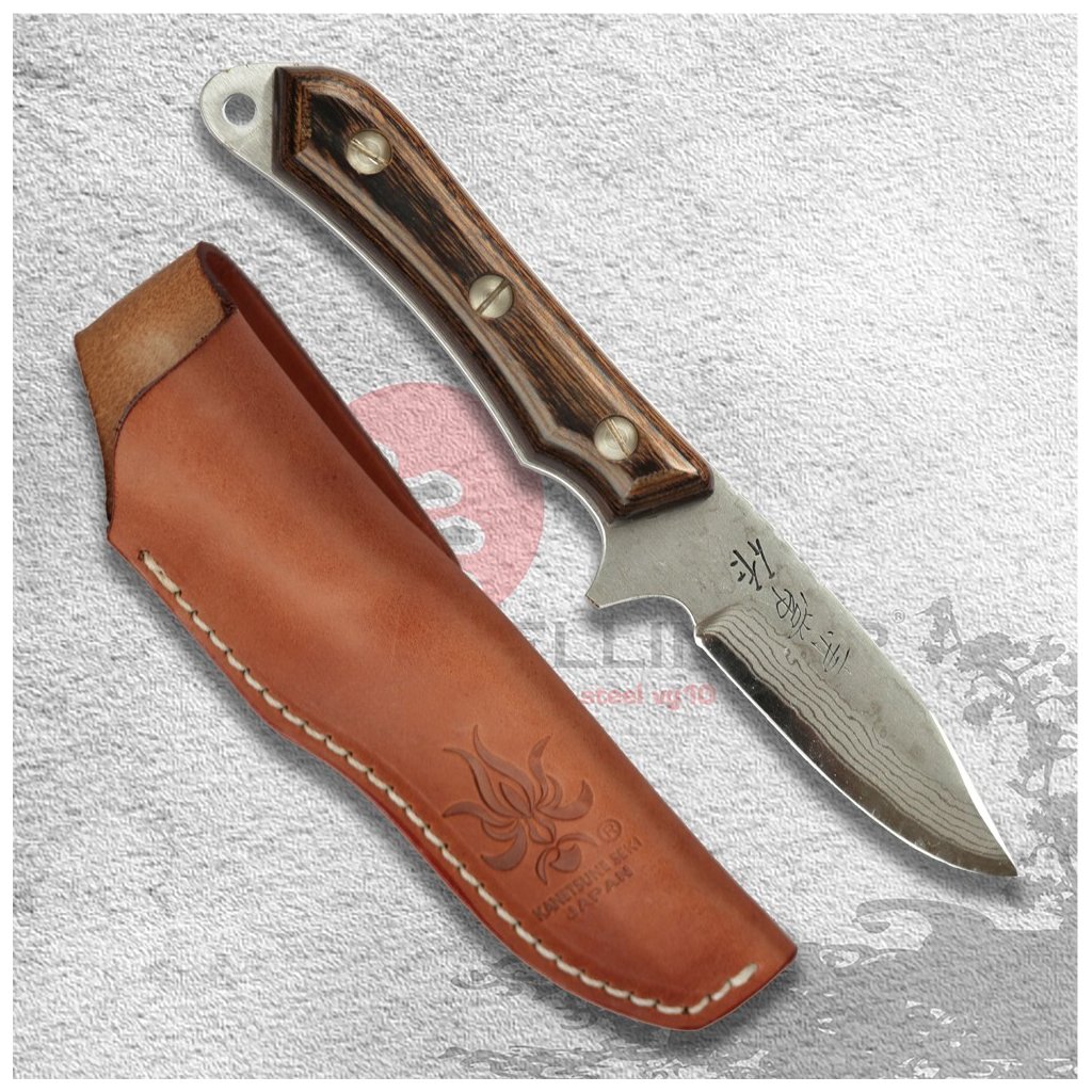 Japonský nůž Kanetsune Seseragi Drop Blue Steel s koženým pouzdrem
