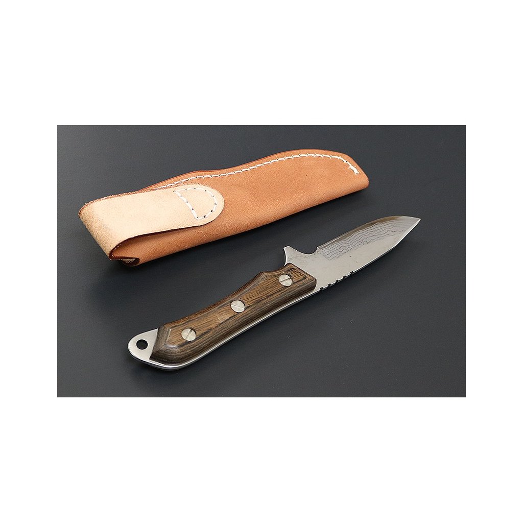 Pevná čepel nože Seseragi Drop je vyrobena z vyhlášené japonské damaškové oceli Blue Steel #2. Tato ocel propůjčuje nástroji mimořádnou řezivost a trvanlivost. Vrstvená damašková ocel navíc vytváří na čepeli neopakovatelný vizuální efekt. Vysoce odolná rukojeť je vyrobena z plywoodu (vrstveného dřeva), skvěle padne i do větších rukou a díky výřezu pro ukazováček umožňuje precizní manipulaci při detailních pracích. Tento nástroj je navržen pro všestranné využití v přírodě a při outdoorových aktivitách. Na konci rukojeti naleznete otvor pro paracord. Součástí balení je kvalitní kožené pouzdro.