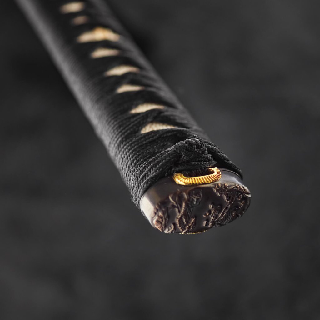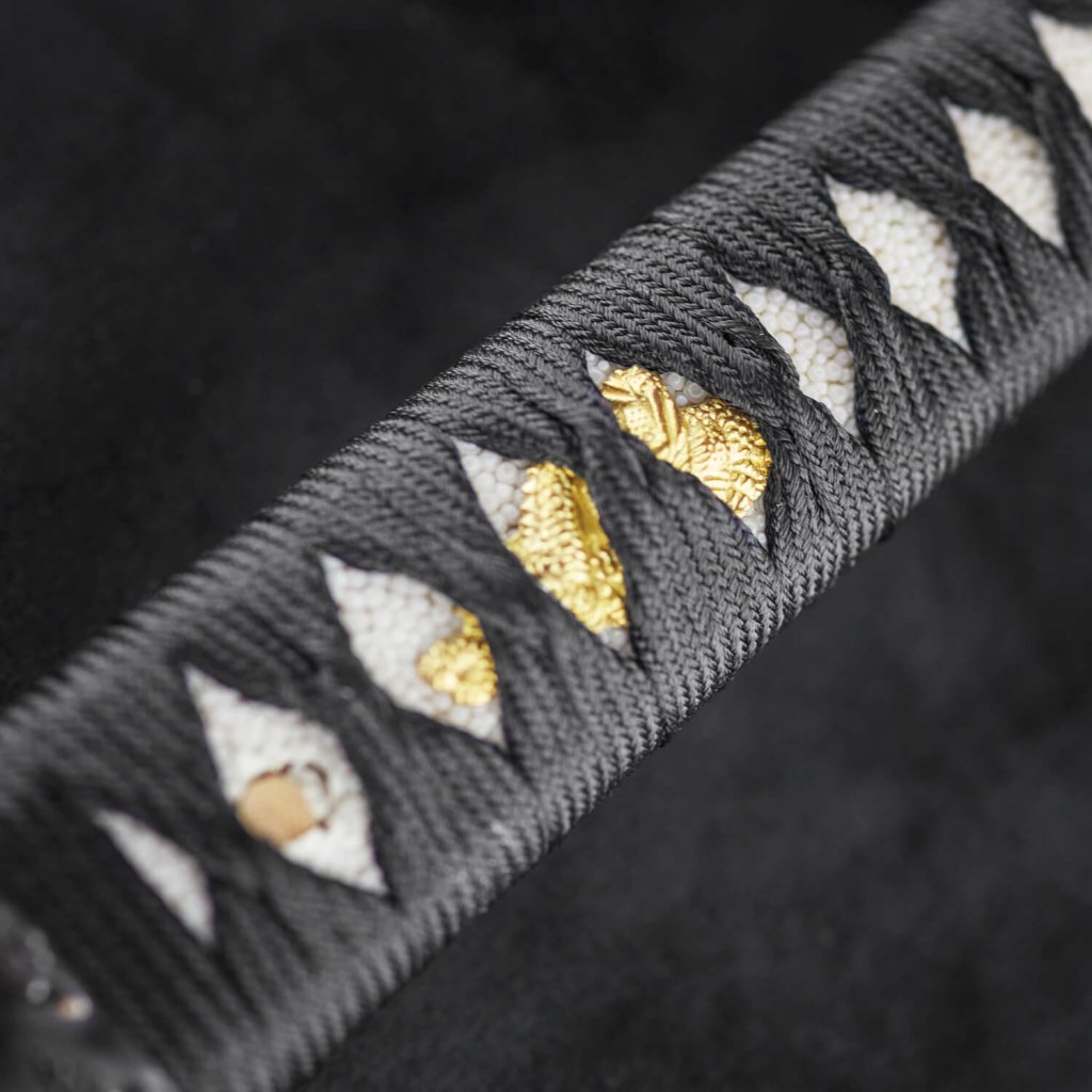 | Tsuka (rukojeť) | Dřevěné jádro, pravá černá rejnočí kůže, černý oplet Ito |