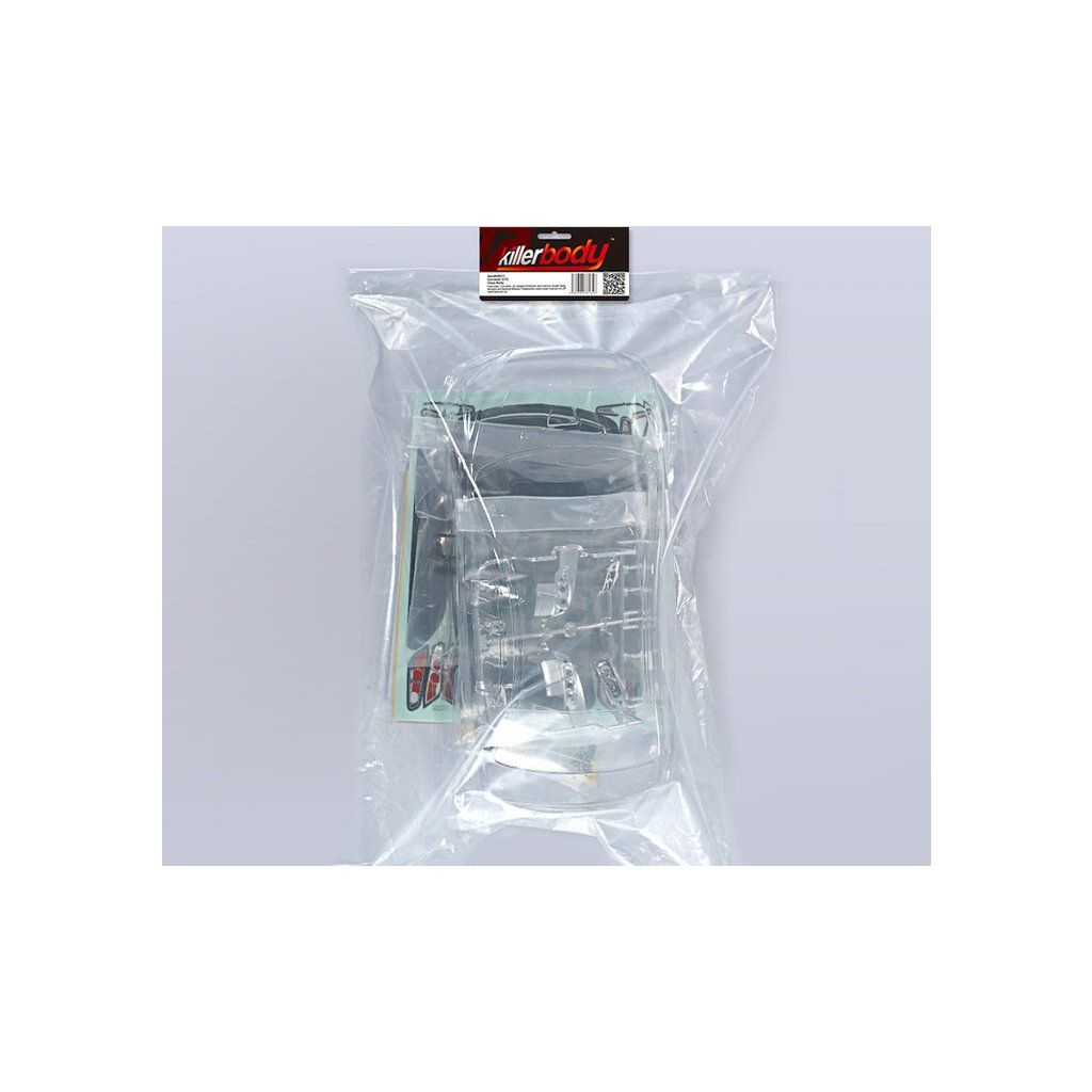 Obsahem balení je nenabarvená karosérie pro RC modely aut 1:10 Mitsubishi Lancer EVO X od Killerbody. Obsahem balení je spousta příslušenství - masky oken, sada chromovaných dílů ( přední a zadní znak, skla zrcátek, koncovky výfuků, paraboly světlometů ), sada černých plastových dílů ( zrcátka, stěrače, zadní křídlo, zadní difusor ), obrázkový návod.