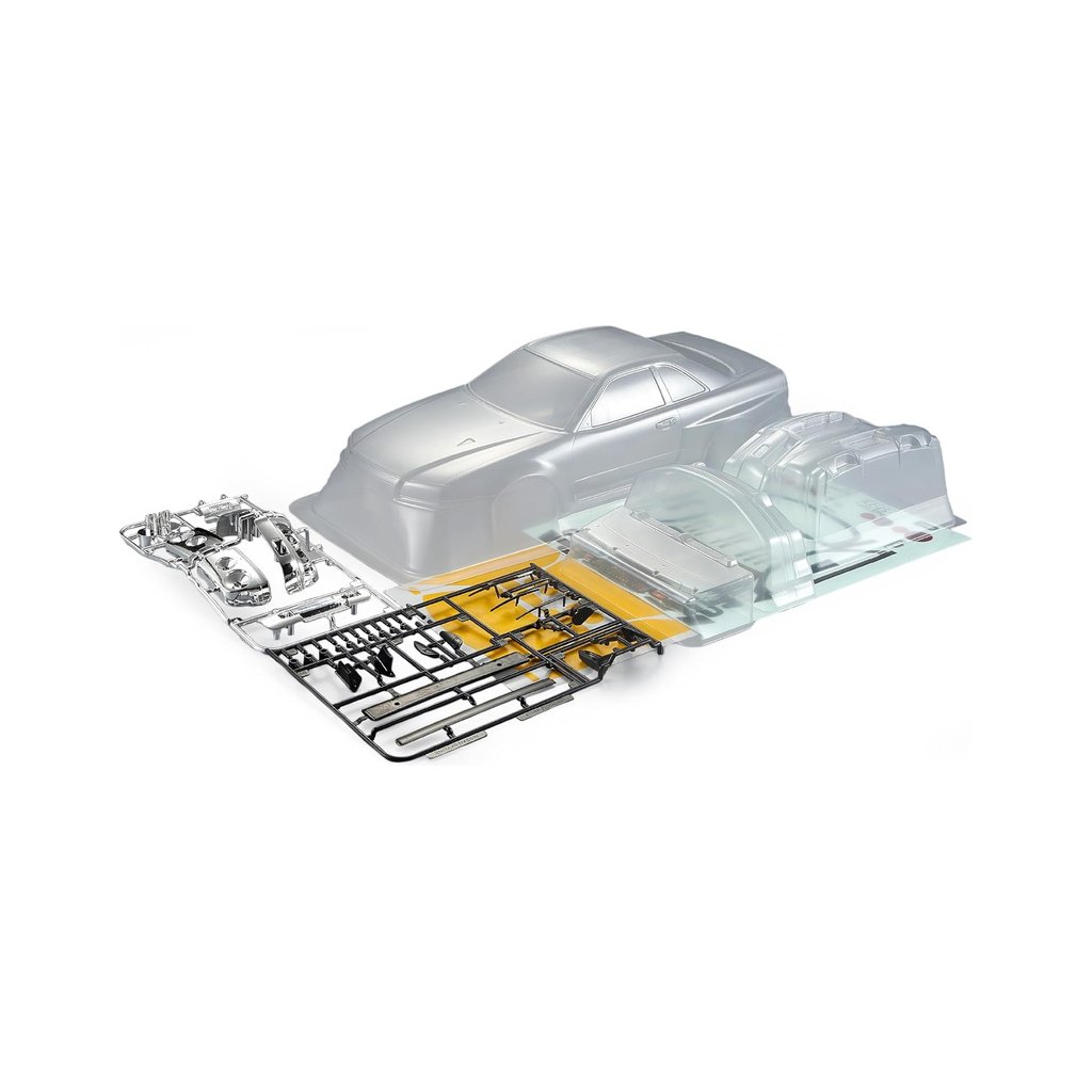 Karosérie Nissan Skyline R34 je v čirém provedení, kterou si můžete nabarvit podle svých představ, tak můžete dát průchod vaší fantazii. Aerodynamické a elegantní zpracování karosérie auta vás určitě nezklame.