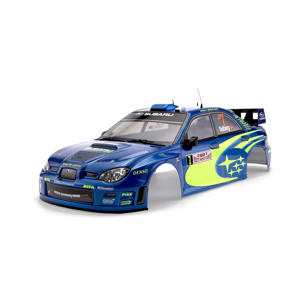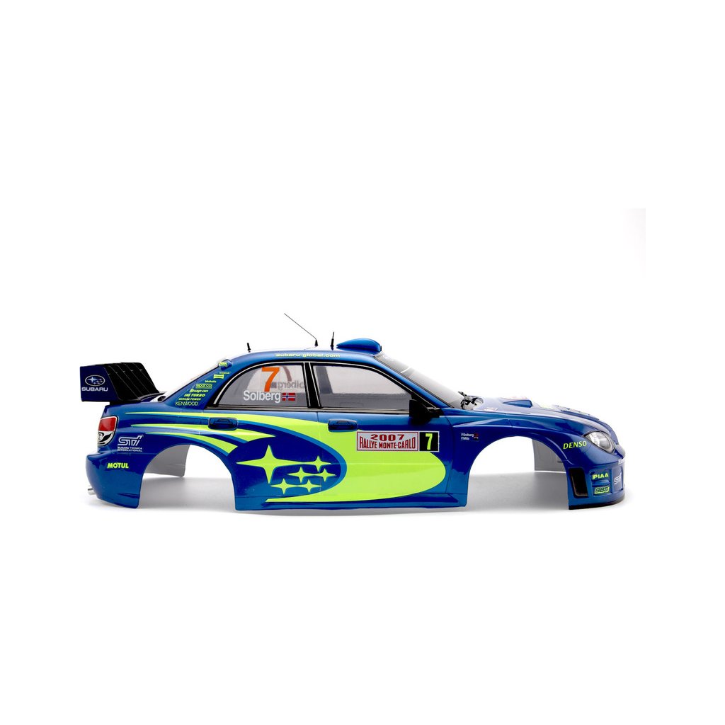 Karosérie Subaru Impreza WRC 2007 v modré barvě je již sestavena. Jen otvory pro připevnění karosérie je nutno dodělat dle potřeby. Karoserie je detailní replikou oficiálního japonského kultovního vozu – známého z několika světových soutěží v rally. Každý detail odpovídá originálu a vypadá skvěle. To vám zaručuje rychlou a zábavnou jízdu jako mini rally auto.
