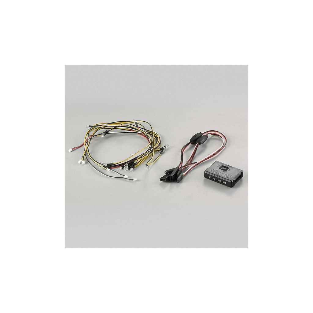Balení obsahuje: řídící jednotku, 2 x 3 oranžové LED diody, 1 x 1 modré LED diody, 1 x 2 červené, LED diody, 2 x 2 bílé LED diody, 2 x Y-kabely - Rx/servo, Rx/regulátor. Originální a český návod.