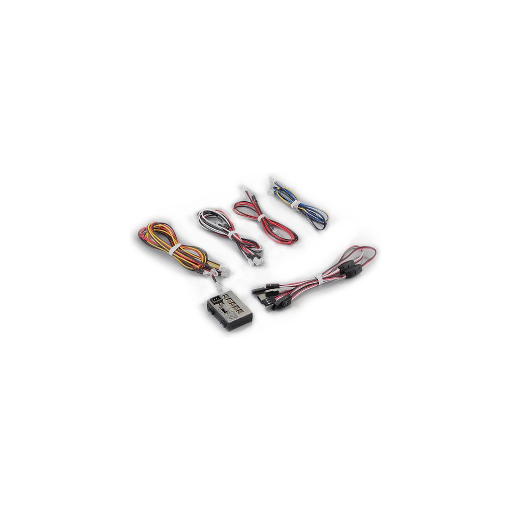 Balení obsahuje: řídící jednotku, 2 x 2 oranžové LED diody, 1 x 2 modré LED diody, 1 x 2 červené, LED diody, 2 x 2 bílé LED diody, 2 x Y-kabely - Rx/servo, Rx/regulátor. Originální a český návod.