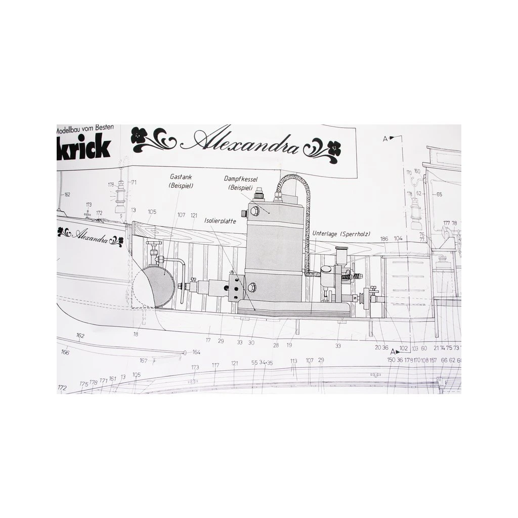 Stavebnice modelu člunu na parní pohon Alexandra v měřítku 1:10. Tento typ lodí byl využíván na počátku minulého století. Alexandra je ideální model pro vstup do světa páry. Konstrukci tvoří laserem řezané dřevěné díly a hotový ABS trup. Stavba nevyžaduje žádné zvláštní znalosti. Stavebnice je bez parního stroje.