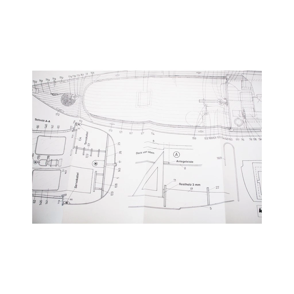Set obsahuje kompletní sadu výkresové dokumentace modelu v měřítku 1:1 s obrázky jednotlivých detailů. Na výkrese jsou v měřítku nakresleny montážní sestavy, jejich kompletace a to včetně montáže parního stroje. Vícejazyčný postup stavby rámcově upravuje logické sestavení jednotlivých komponentů.