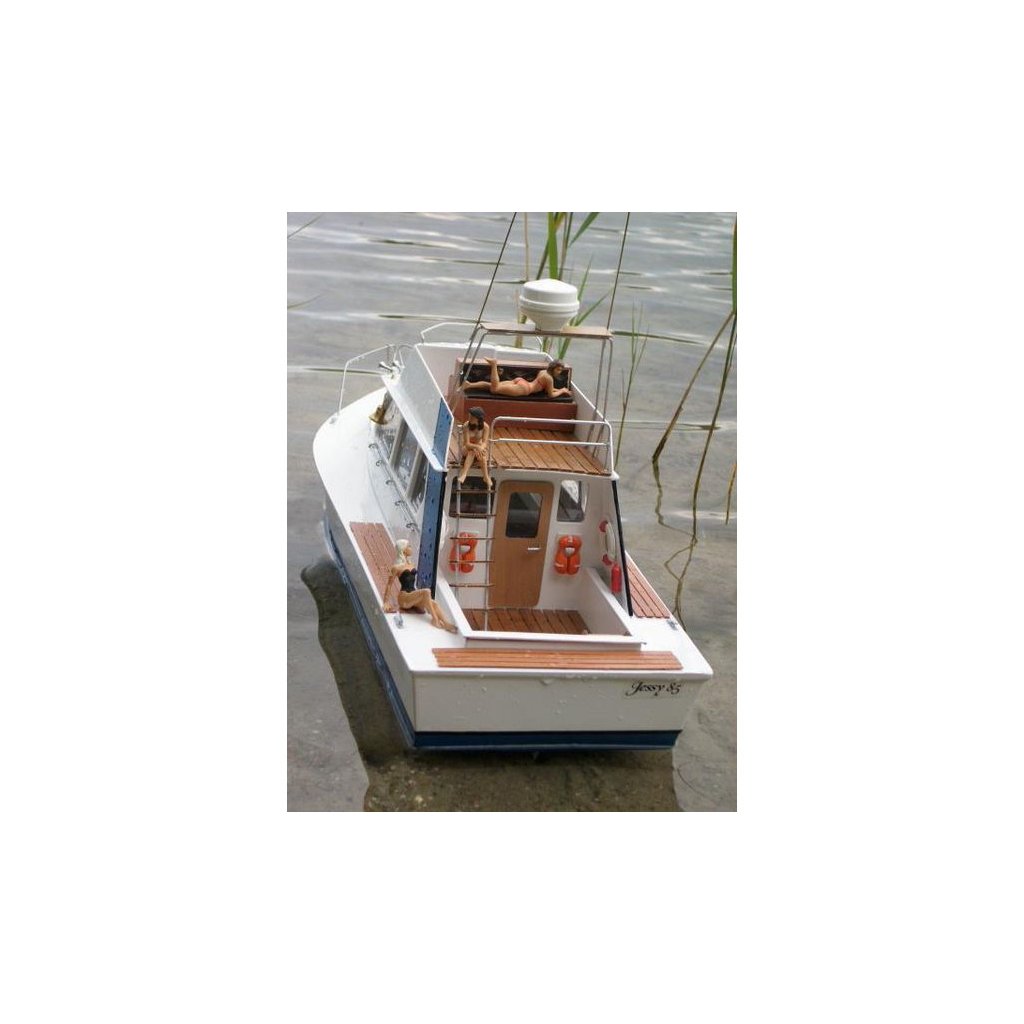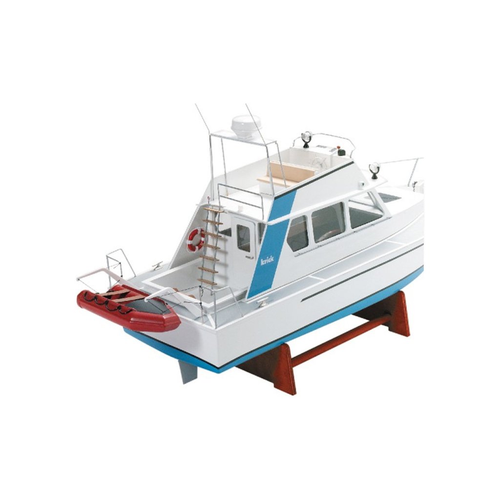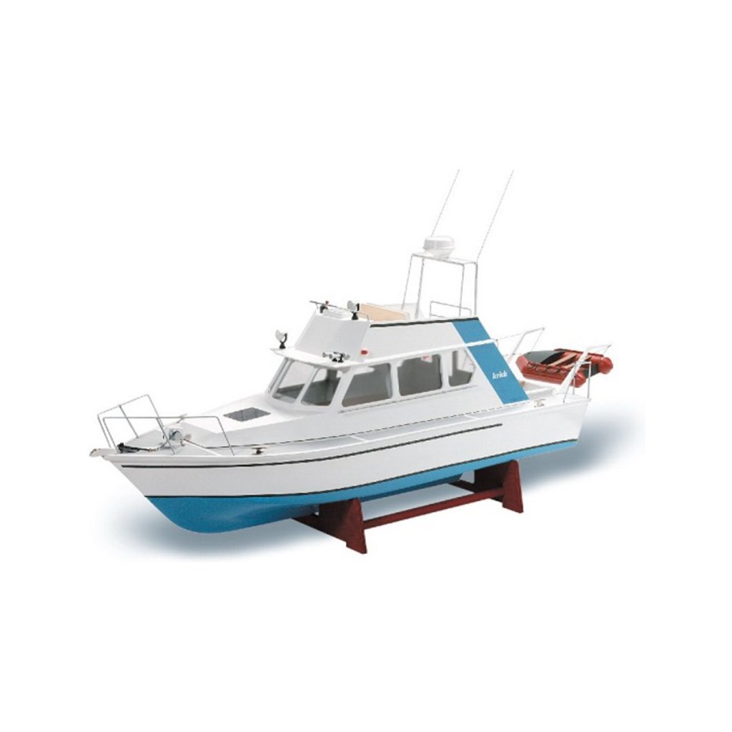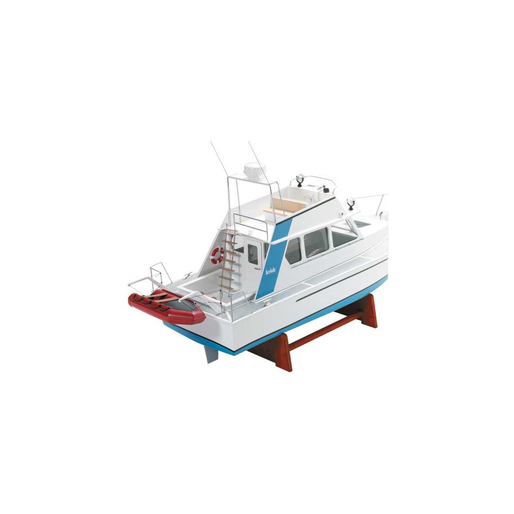 Výlisek trupu z ABS, sada laserem řezaných překližkových dílů, motor Speed 400, lodní šroub s hřídelí, táhla, páka řízení, plastové maketové doplňky, čirý plast na zasklení kabiny, montážní příslušenství, návod v češtině, manuál EN.