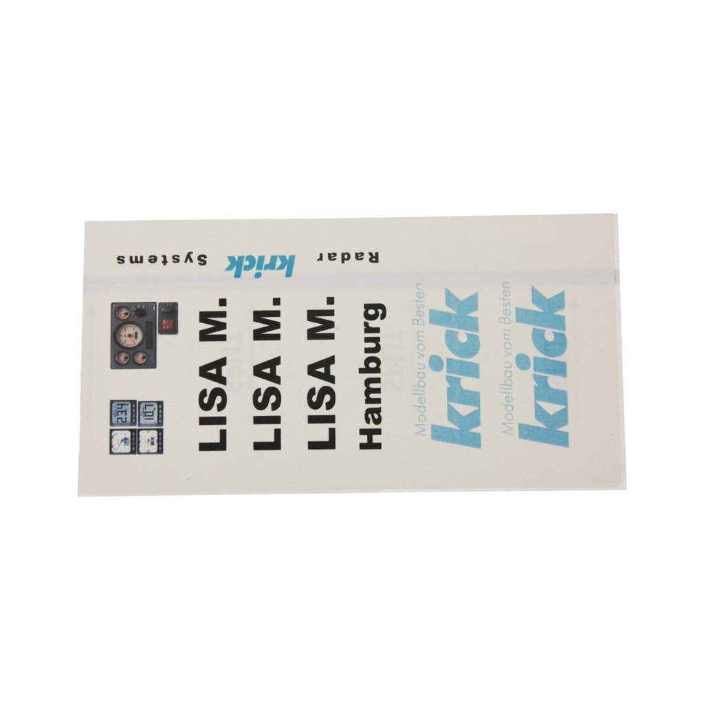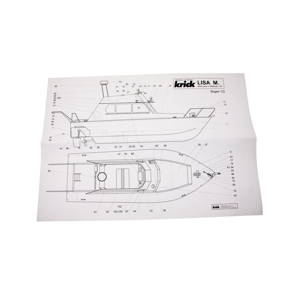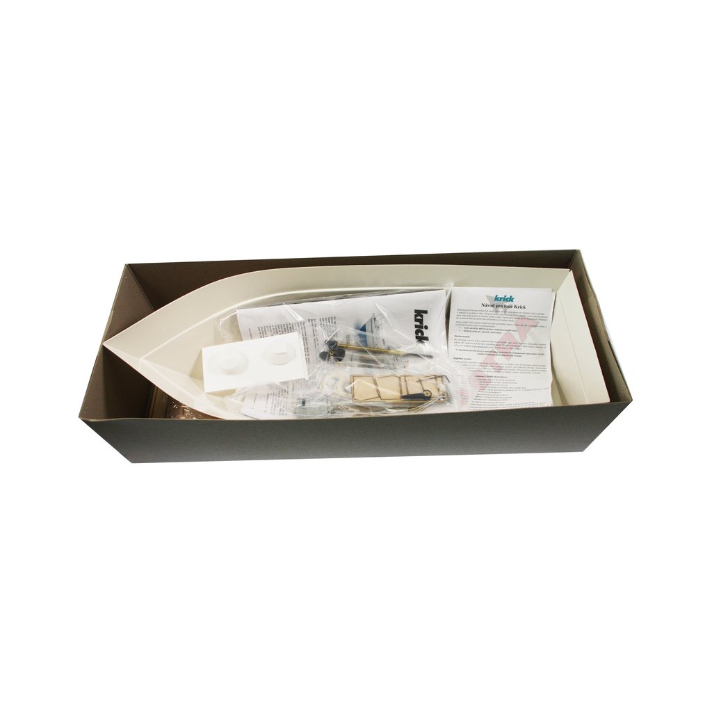 Stavebnice RC modelu lodi od firmy Krick, Motorová jachta Lisa. Model je určen pro začátečínající lodní modeláře. Obsahuje plastový trup, dřevěné díly paluby a interiéru, motor Speed 400, lodní šroub s hřídelí, kormidlo, volant, vlajku, maketové díly a drobné příslušenství.