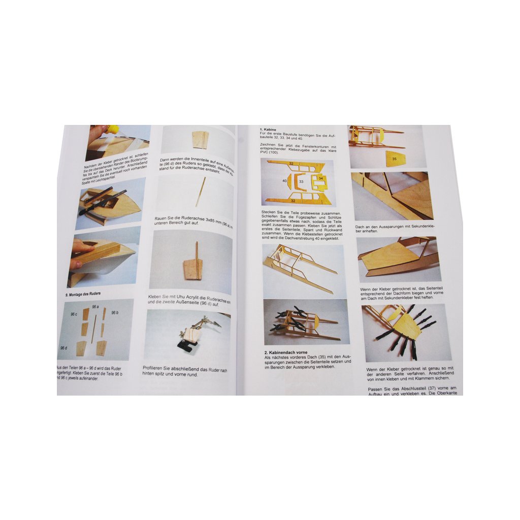 Po otevření víka krabice naleznete dřevěné díly modelu z překližky, sadu lišt, drobné součásti uzavřené v sáčcích, sadu výkresů a manuál.
