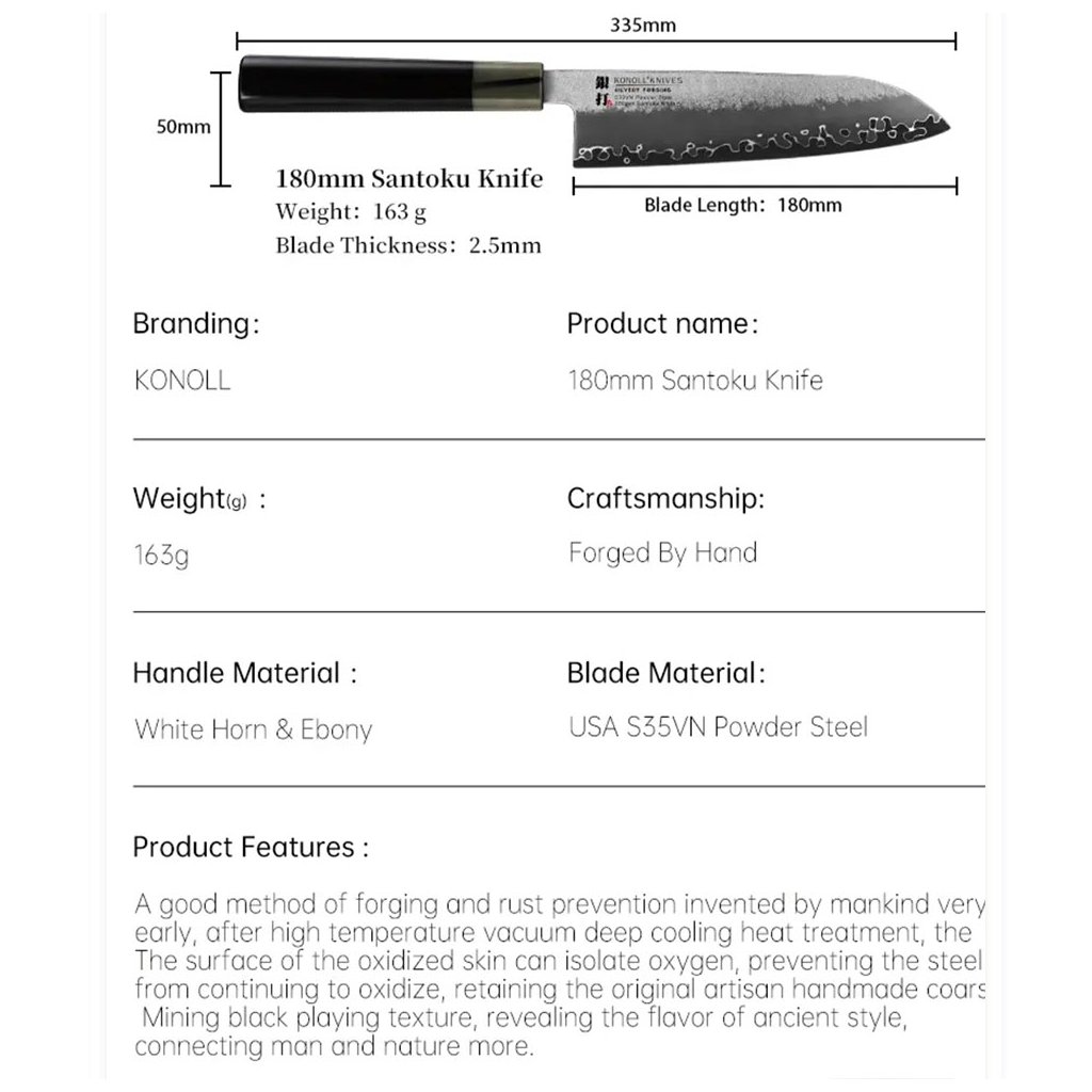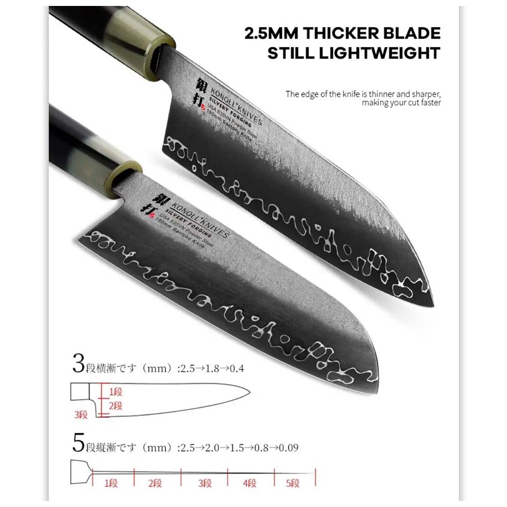 Kuchyňský nůž Santoku 180 mm Konoll® Silver Forging