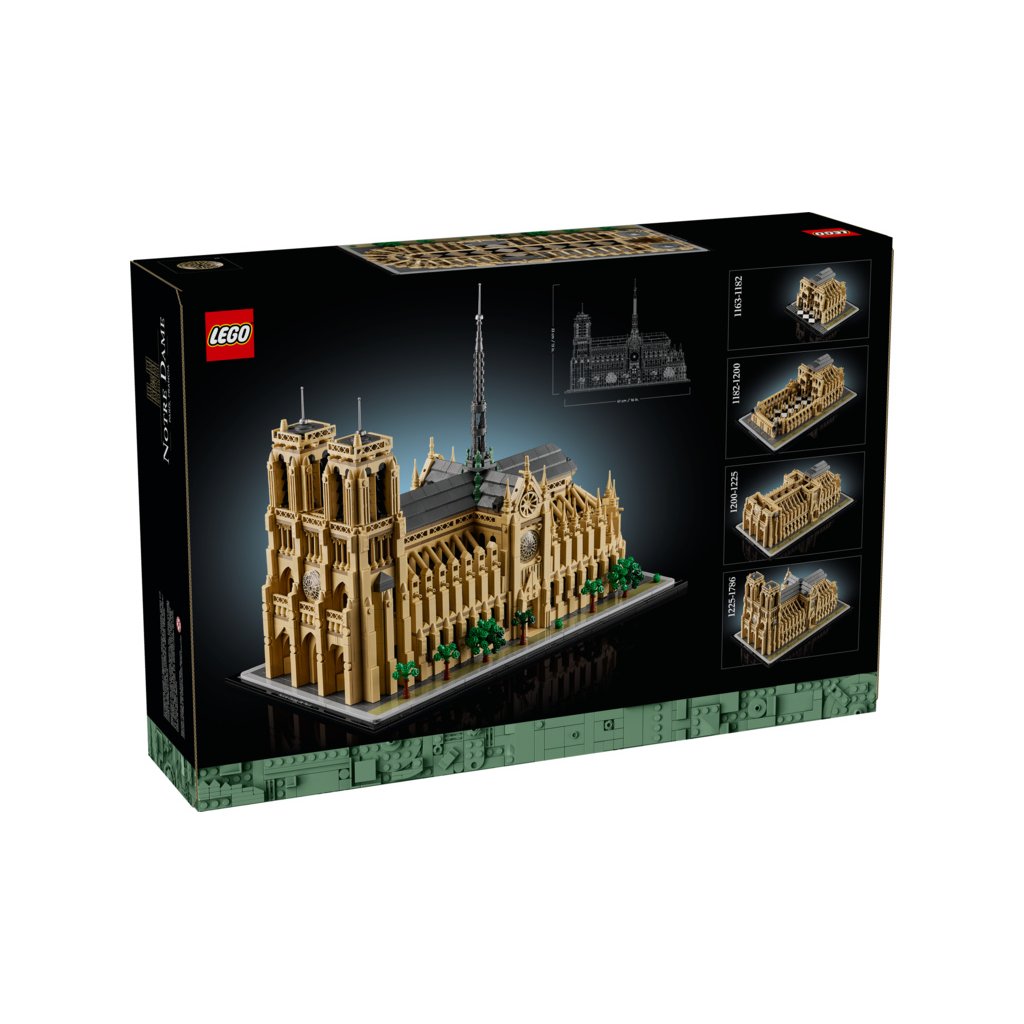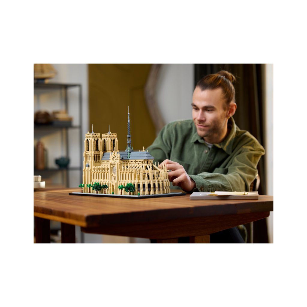 - Architektonický model katedrály Notre-Dame v Paříži – Vžijte se do každého okamžiku architektonického vývoje této slavné pařížské památky s touto stavebnicí LEGO® Architecture pro dospělé