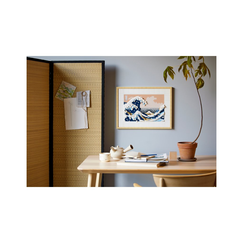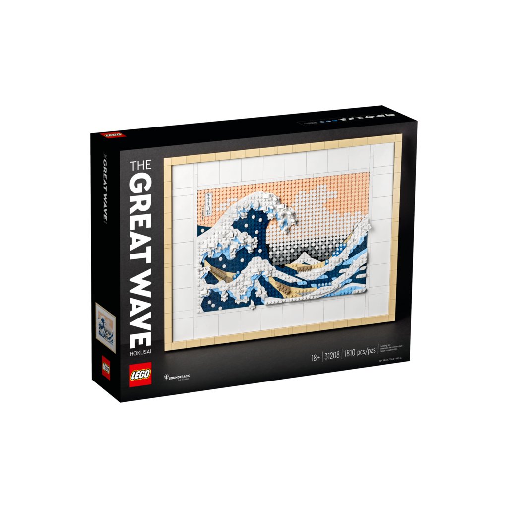 - Úchvatný výstavní kus – Volnočasový projekt LEGO® pro dospělé čítající 1 810 dílků obsahuje 6 pláten, 2 dílky pro zavěšení, oddělovač kostek a ozdobný dílek s podpisem malíře Hokusaie