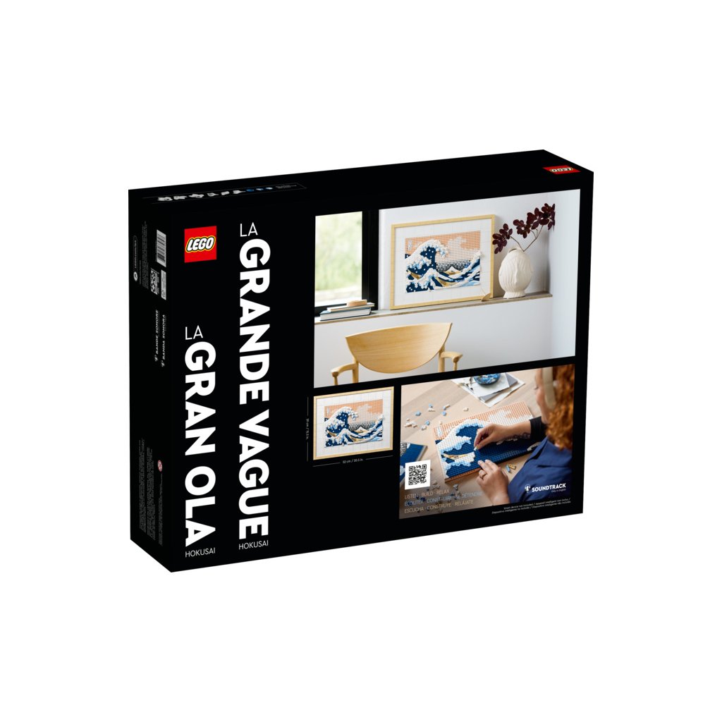 Připomeňte si obraz Velká vlna malíře Hokusaie prostřednictvím kostek LEGO. Po sestavení vás čeká dobře známé umělecké dílo s dramatickým efektem. Zatímco budete pracovat na tomto prémiovém bytovém doplňku, naskenujte QR kód a zaposlouchejte se do soundtracku, jehož obsah je ušitý na míru tomuto projektu. Na závěr dílo opatřete dekorativním dílkem s Hokusaiovým podpisem a hrdě si výtvor vystavte na zdi.