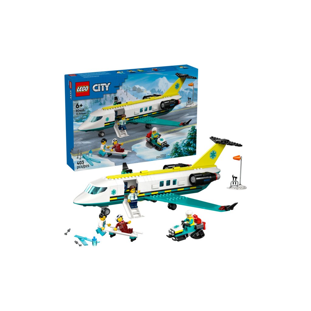 Probuďte dětskou představivost se stavebnicí LEGO® City (60465) Letadlo záchranářské služby pro děti od 6 let. Toto dvoumotorové letadlo se pyšní řadou parádních funkcí pro milovníky modelů letadel, včetně výklopných schodů a palubní lékařské laboratoře. Součástí stavebnice je také sněžný skútr, malá scéna z letiště s větrným rukávem, doplňky pro první pomoc a minifigurka pilota, lékaře, záchranáře a lyžaře na akční záchranné mise.