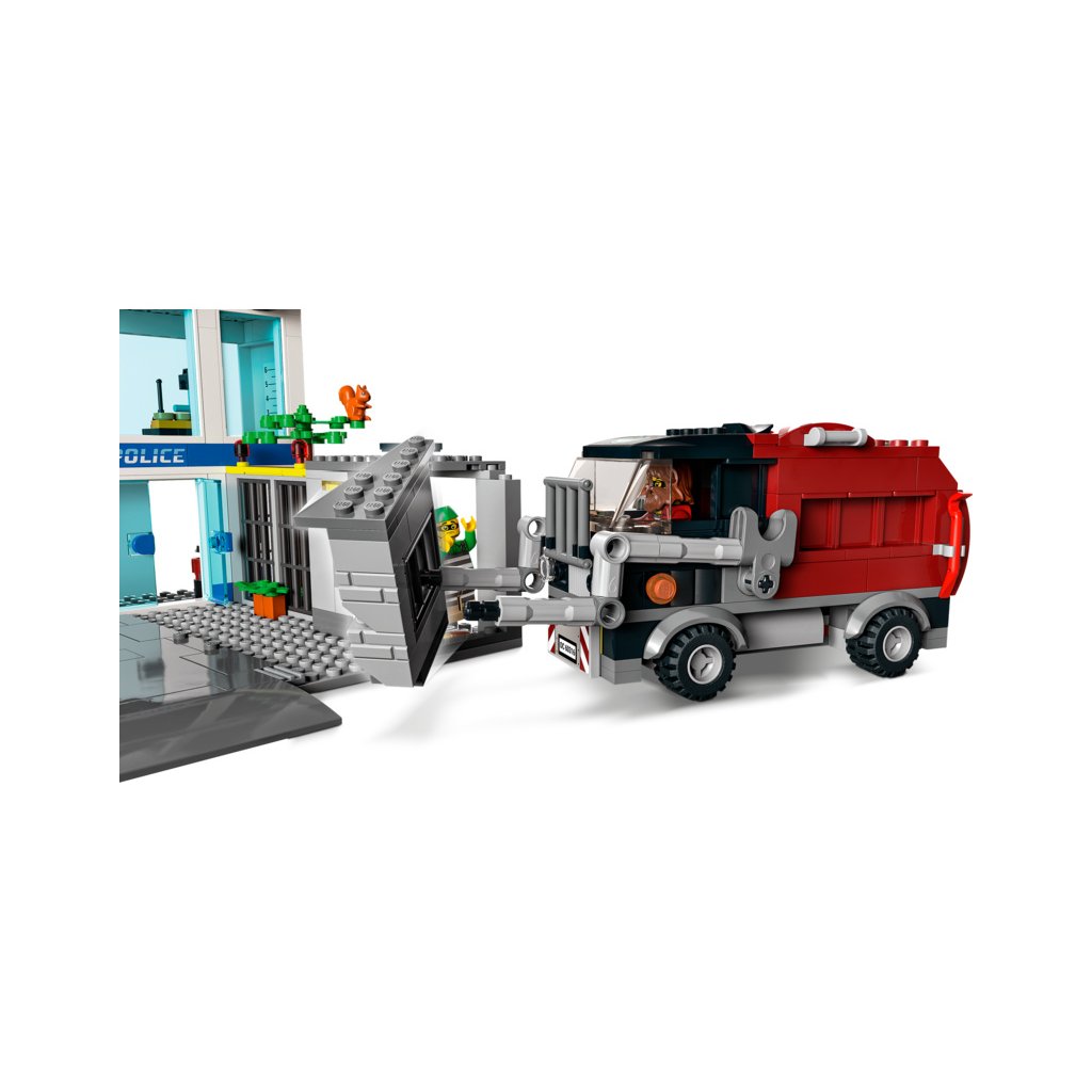- Nepřeberné množství funkcí – Popelářské auto je vybaveno výtahem na popelnice a 2 „beranidly“ pro proražení zdi vězeňské cely. Nechybí ani křižovatka umožňující propojení s ostatními sadami LEGO® City