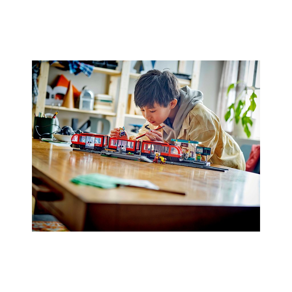 - Model tramvaje – Fanoušci trolejbusů a vlaků si zamilují stavebnici LEGO® City Tramvaj a zastávka v centru města pro kluky a holky od 7 let