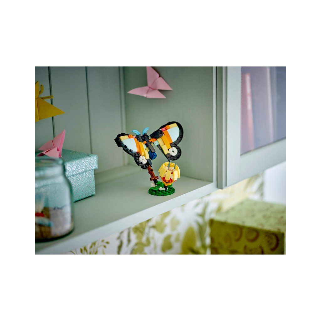 Děti si můžou postavit hned 3 různé LEGO modely ze stejných kostek: pohyblivého tukana s plátkem melounu, který lze umístit do jeho zobáku, pestrobarevného motýla s pohyblivými křídly poletujícího nad trávou s květinou a tropickou rybu s pohyblivými ploutvemi, která se otáčí na podstavci o celých 360 stupňů.
