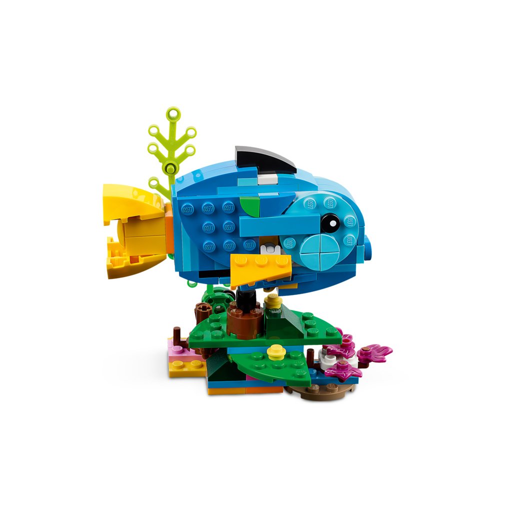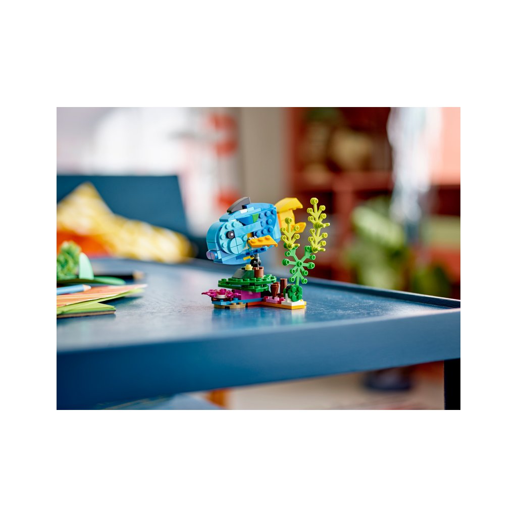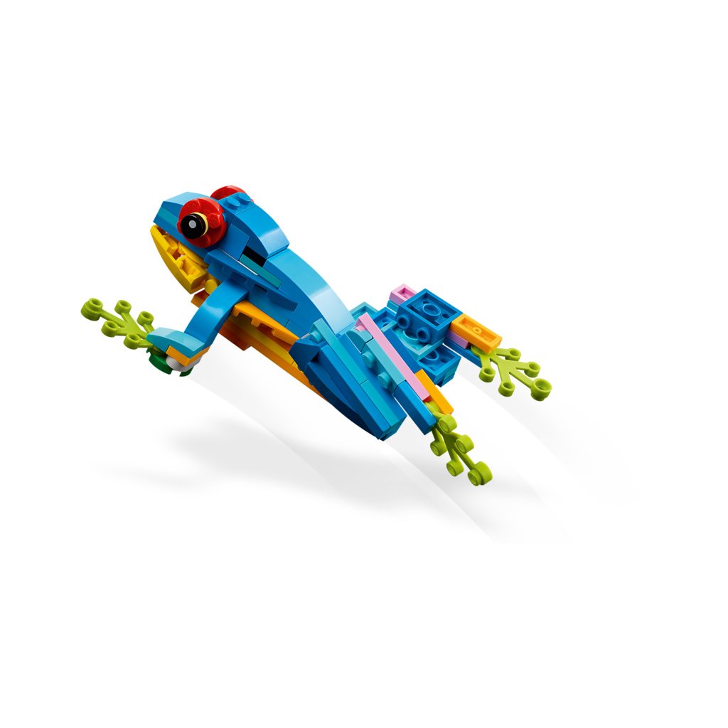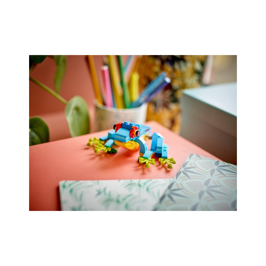 S touto stavebnicí LEGO 3 v 1 budou mít děti příležitost postavit si 3 různá exotická zvířata. Mohou si poskládat barevného papouška na větvi stromu a přestavět ho na hravou rybu plavající v moři nebo na zábavnou žábu, která umí hýbat nohama.