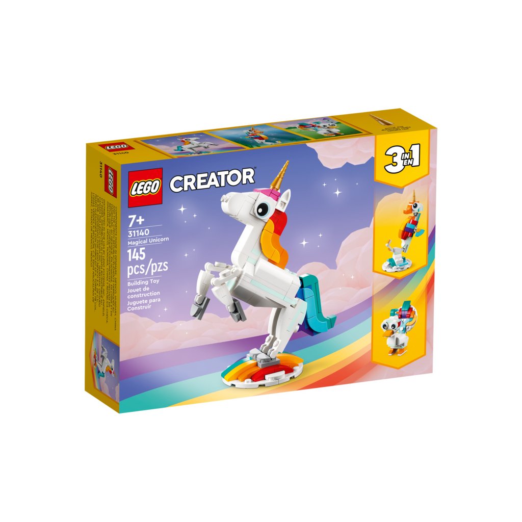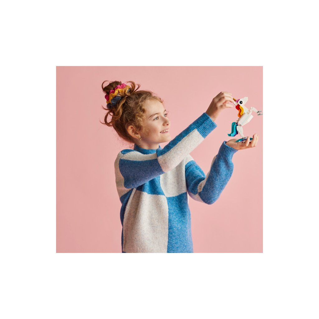 - 3 kouzelní tvorové v 1 stavebnici – Se stavebnicí Kouzelný jednorožec od LEGO® Creator 3 v 1 (31140) mohou malí stavitelé stavět a přestavovat 3 různé barevné modely