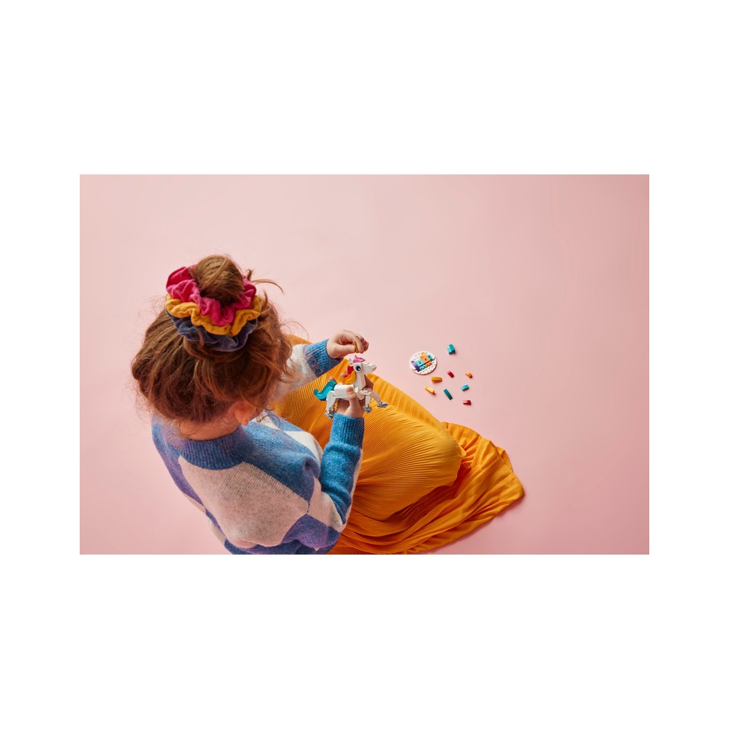 Nápadité děti od 7 let se přenesou do fantastického světa, kde si užijí vzrušující akci se stavebnicí Kouzelný jednorožec (31140). Přináší model jednorožce se zlatým rohem, barevným ocasem a pohyblivýma nohama a kopyty. Na duhovém podstavci si ho můžete vystavit ve 2 polohách: stojícího na všech 4 nohách nebo na zadních.
