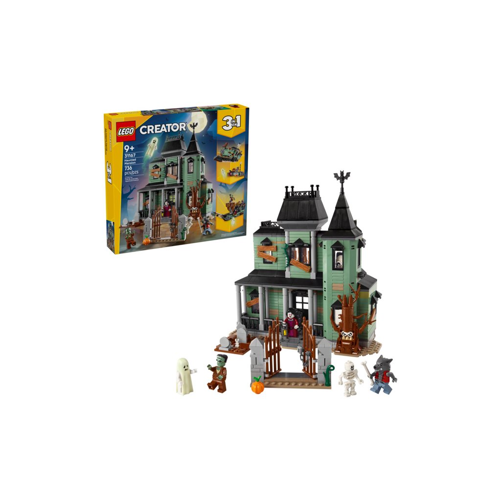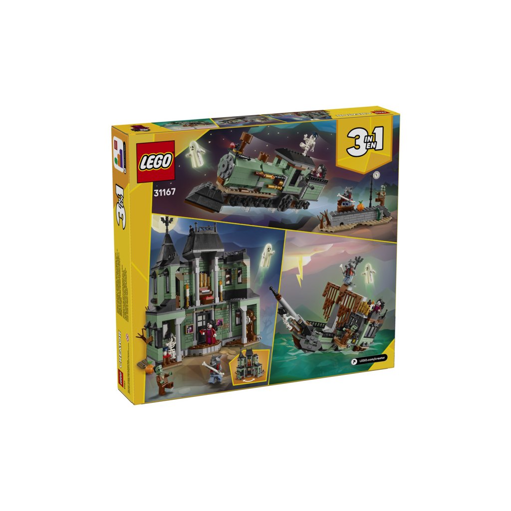 Vyprávějte strašidelné příběhy se stavebnicí LEGO® Creator 3 v 1 (31167) Strašidelný dům. Dvoupatrový strašidelný dům je nabitý úžasnými detaily a funkcemi, včetně otevírací přední brány, hřbitova, odpojitelného strašidelného stromu, varhan, skrytého ducha, kterého odhalíte otočením kola, a otevíracího zadního dílu pro ještě více herních možností.