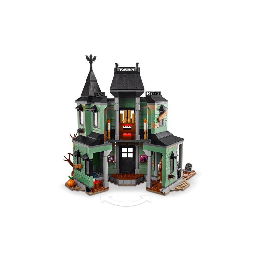 - Spousta zábavných doplňků – 2patrový strašidelný dům má otevírací přední bránu, hřbitov, děsivý strom, varhany, skrytého ducha, kterého odhalíte otočením kola, a otevírací zadní část pro ještě více herních možností