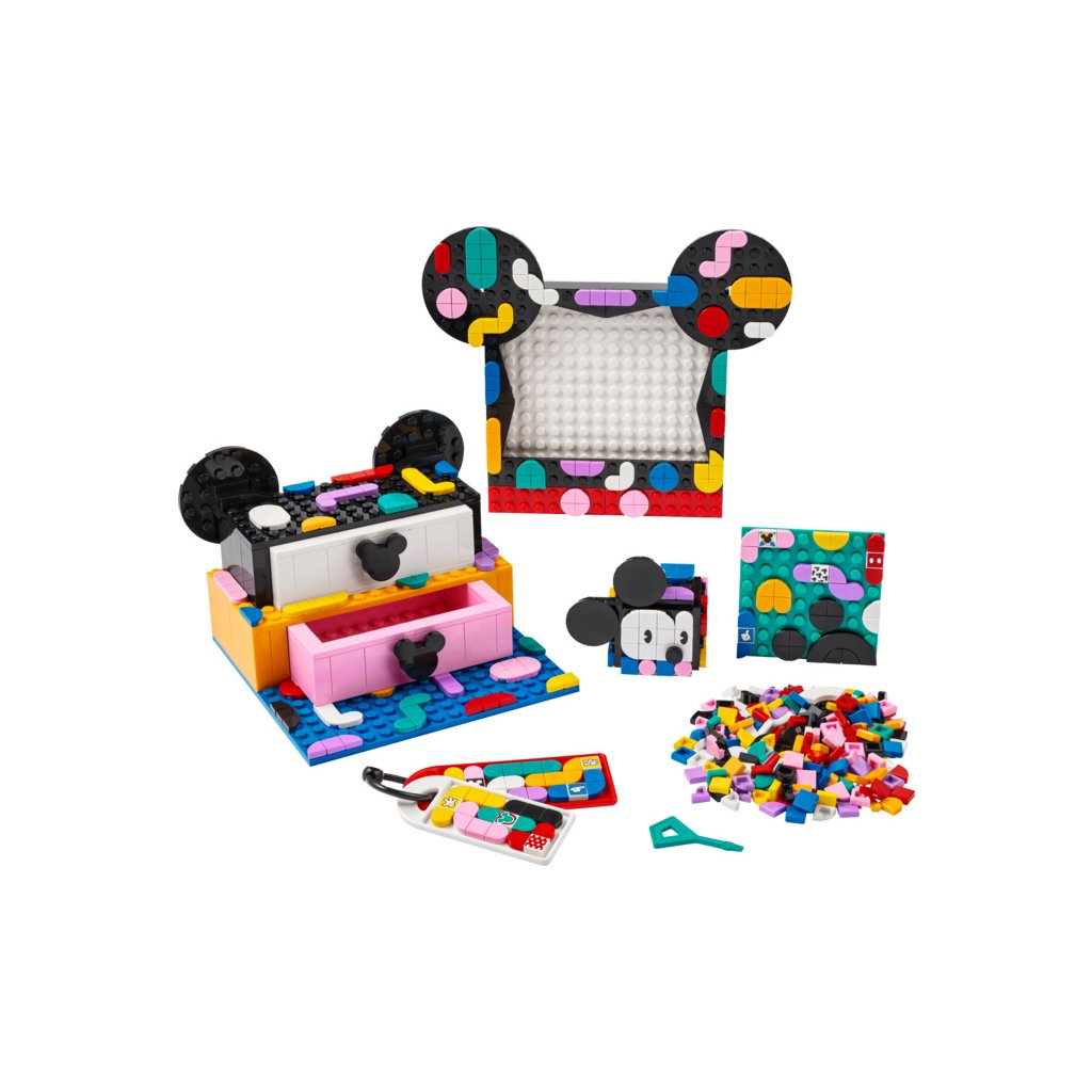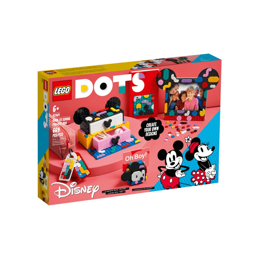 - Tvořte, zdobte, používejte – Ohromte všechny děti, které chtějí udávat trendy nebo zbožňují umění a tvoření školním boxíkem Myšák Mickey a Myška Minnie (41964) od LEGO® DOTS ǀ Disney. Kreativní zábava začíná hned po otevření krabice