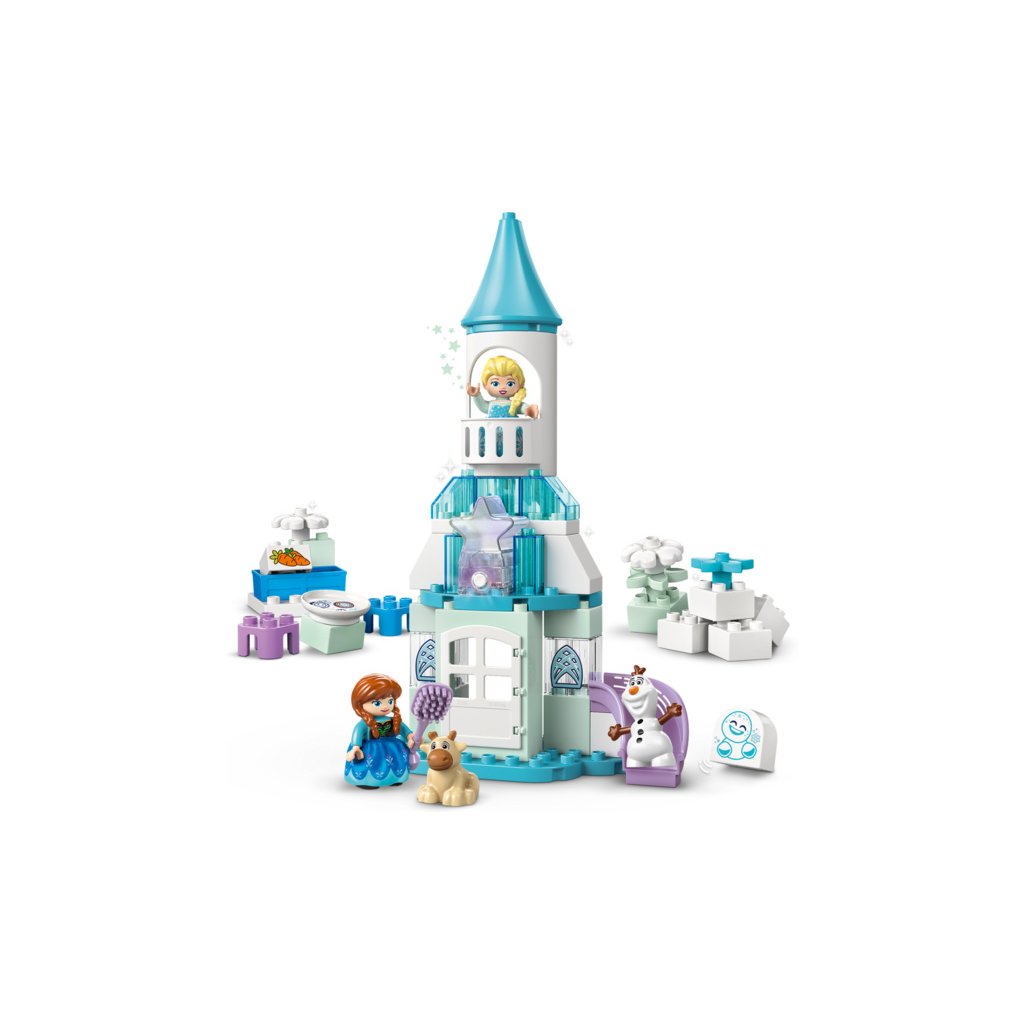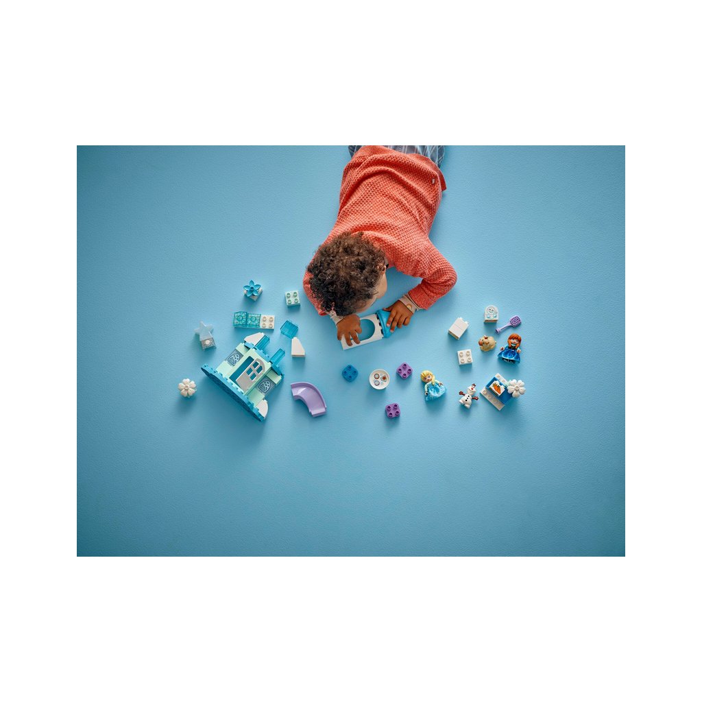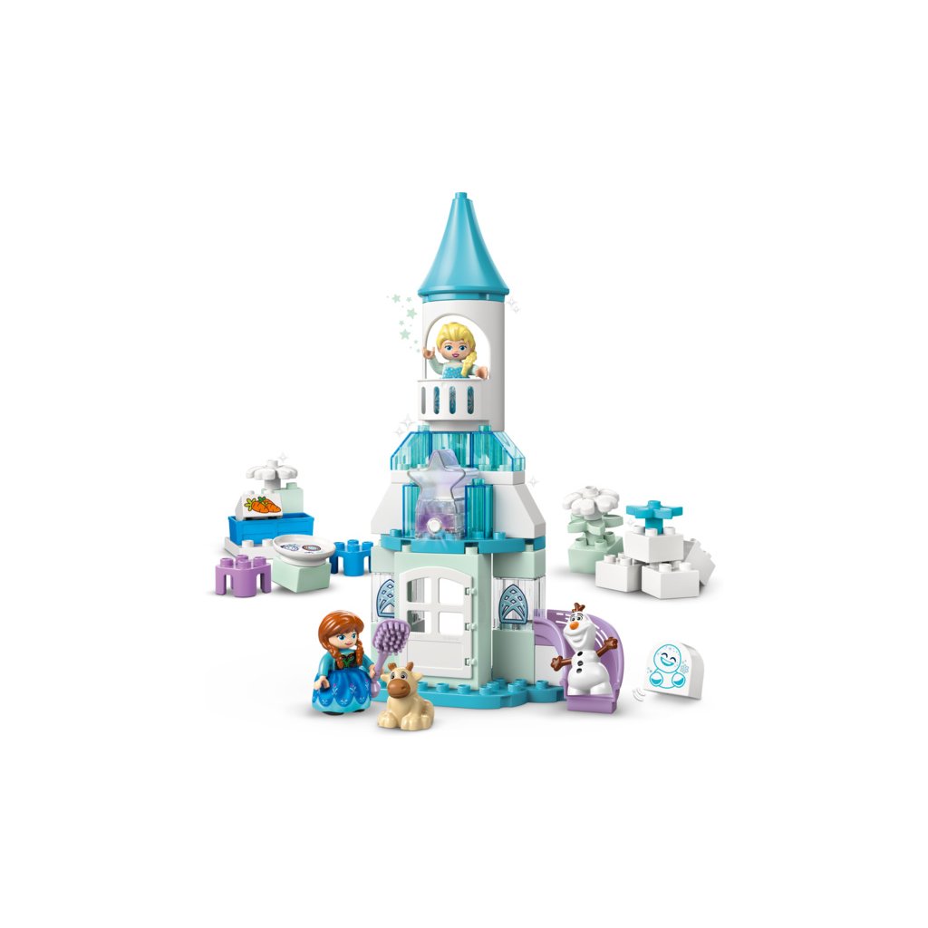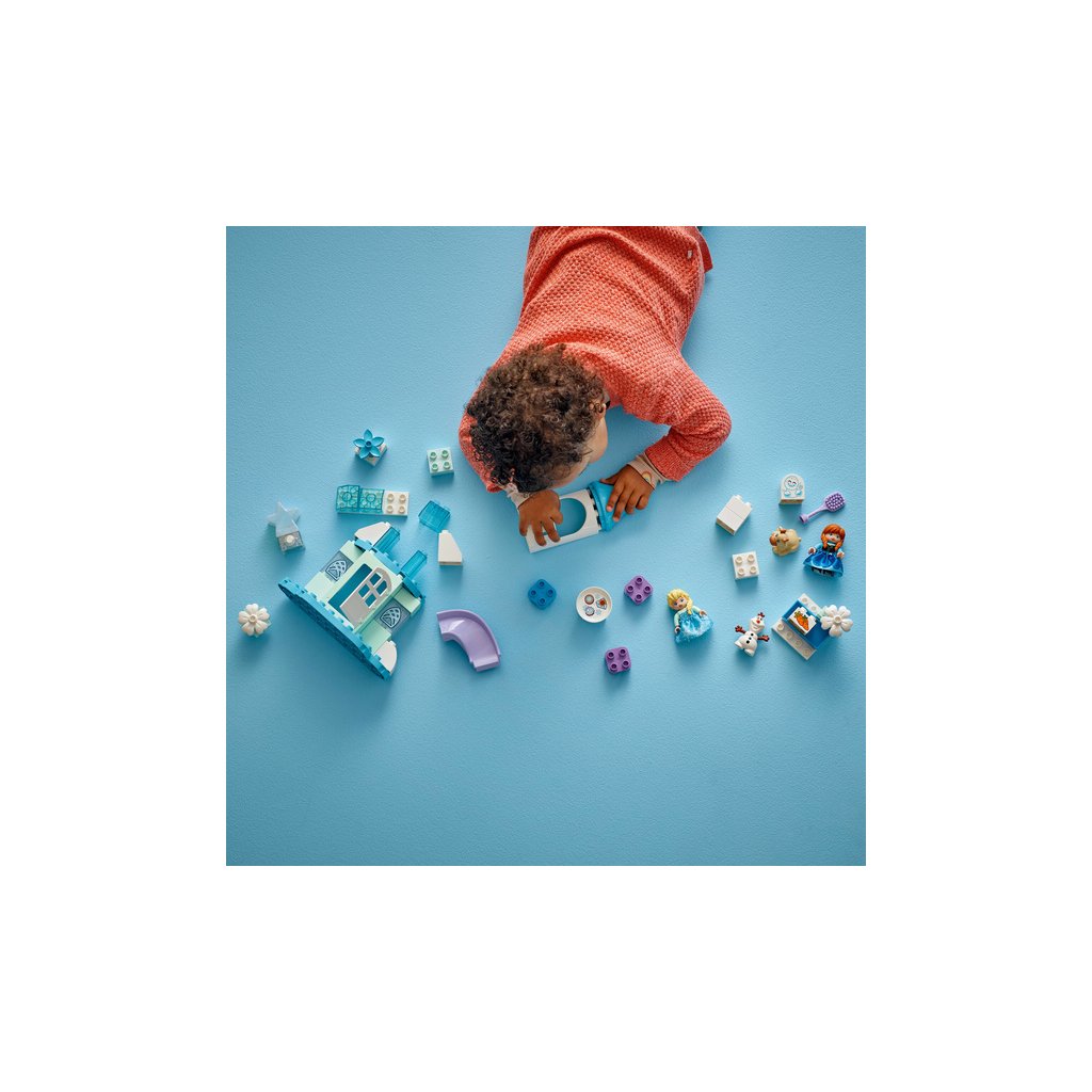 - Prvky z filmu Ledové království – Součástí stavebnice je 5 postav LEGO® DUPLO® │ Disney: Elsa, Anna, sněhuláček Marshmallow, malý Sven a Olaf, a navíc doplňky včetně skluzavky, krmítka a kartáče