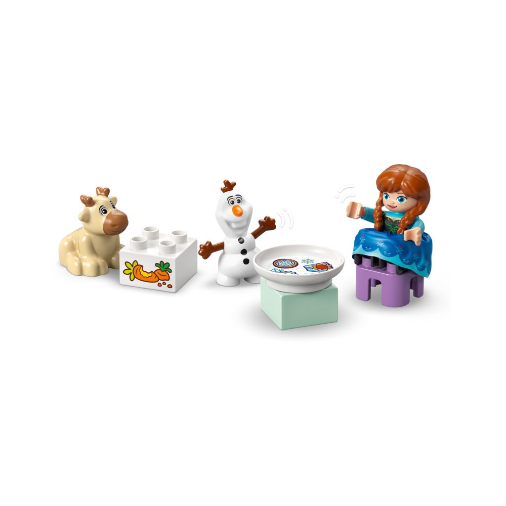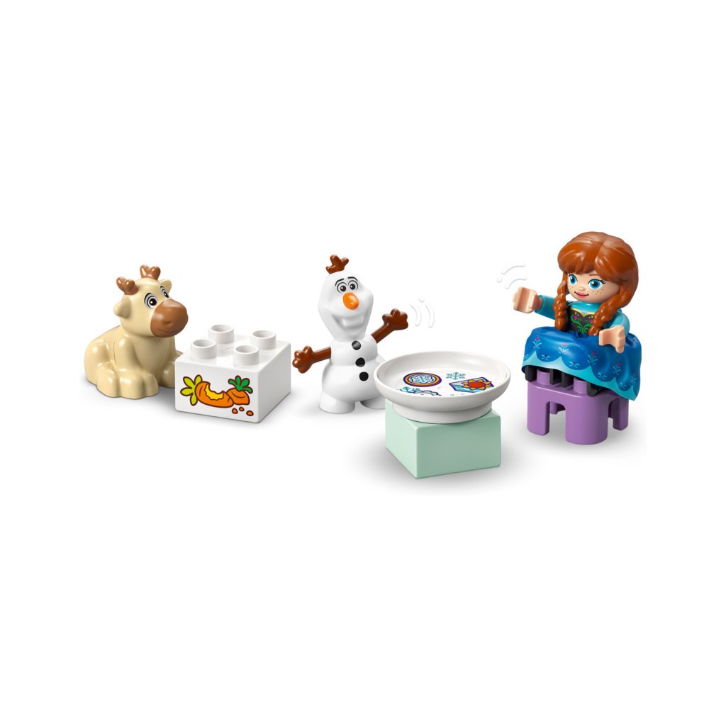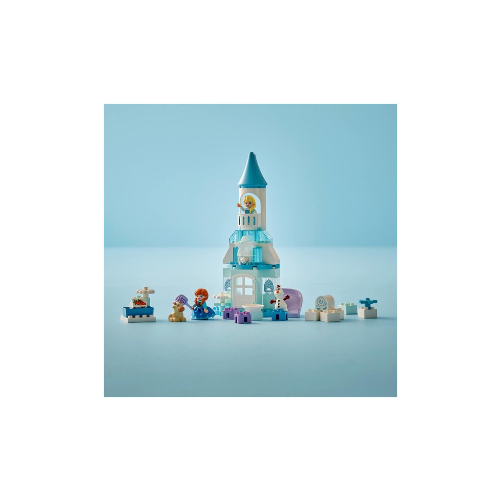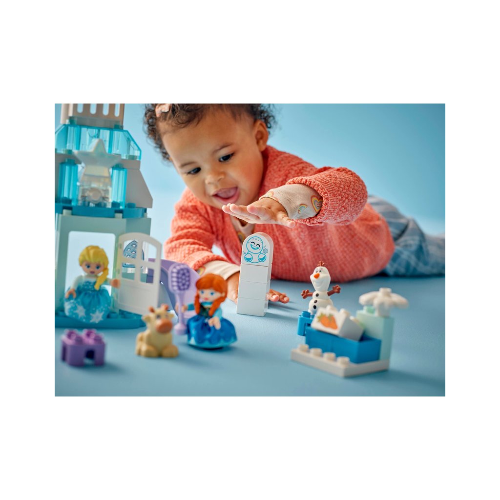 - Prvky z filmu Ledové království – Součástí stavebnice je 5 postav LEGO® DUPLO® │ Disney: Elsa, Anna, sněhuláček Marshmallow, malý Sven a Olaf, a navíc doplňky včetně skluzavky, krmítka a kartáče