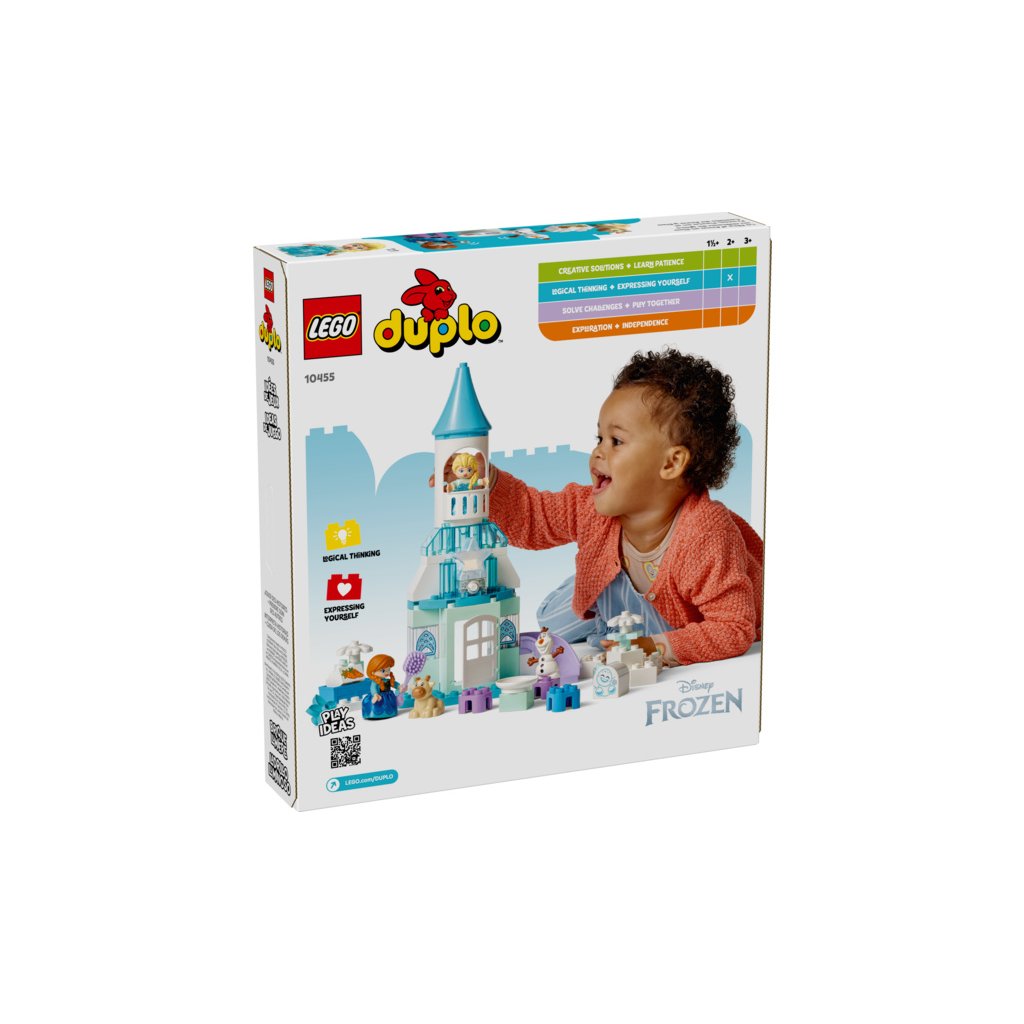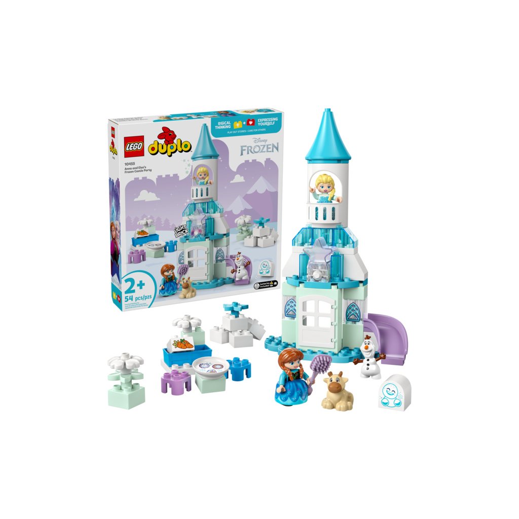 Ponořte se se svými ratolestmi do světa kreativního hraní se stavebnicí LEGO® DUPLO® │ Disney (10455) Ledové království: Anna a Elsa a oslava na hradě pro batolata. Součástí jsou postavy LEGO DUPLO │ Disney Elsy, Anny, sněhuláčka Marshmallowa, malého Svena a Olafa, se kterými si děti užijí nekonečné možnosti hraní na život na hradě a péči o malého Svena.