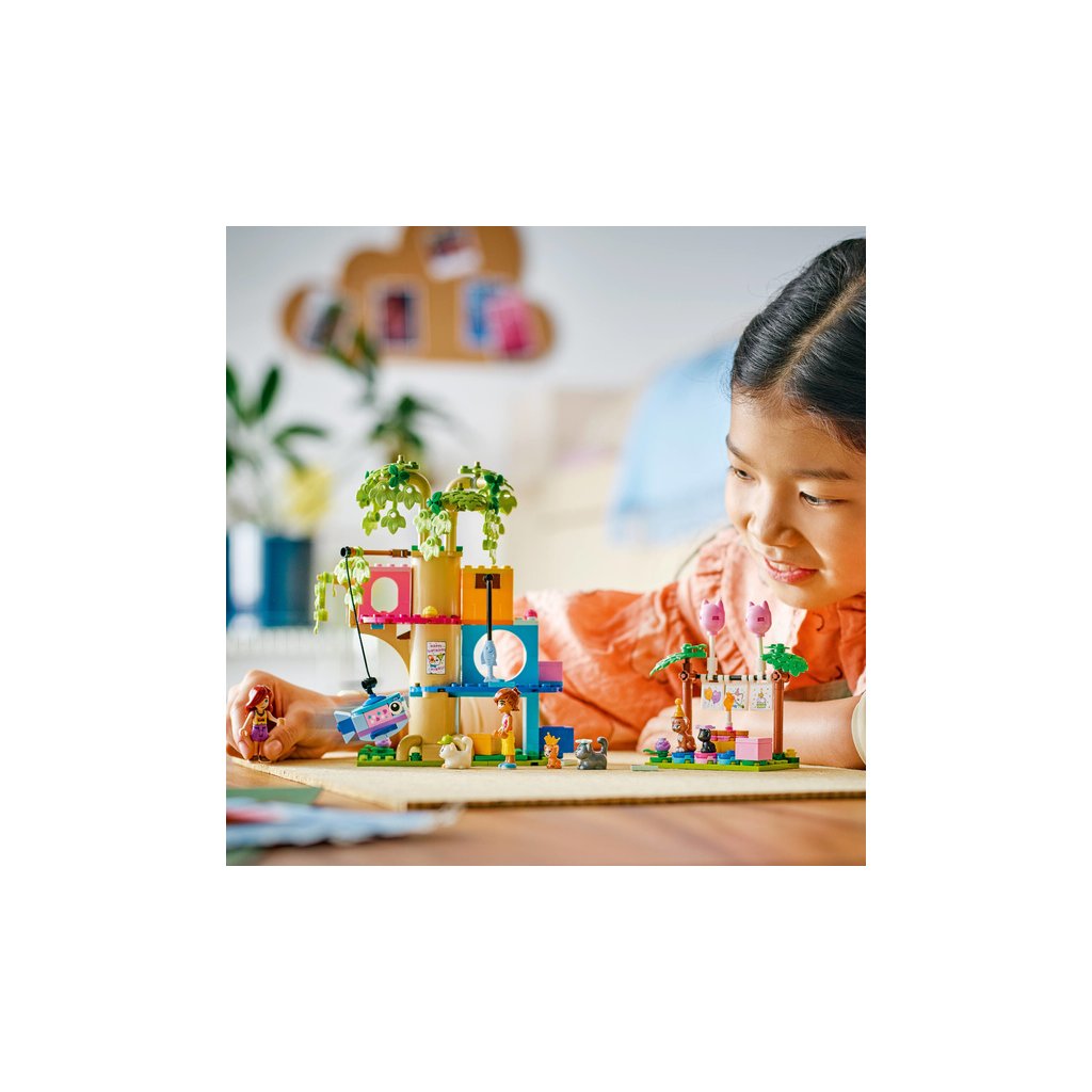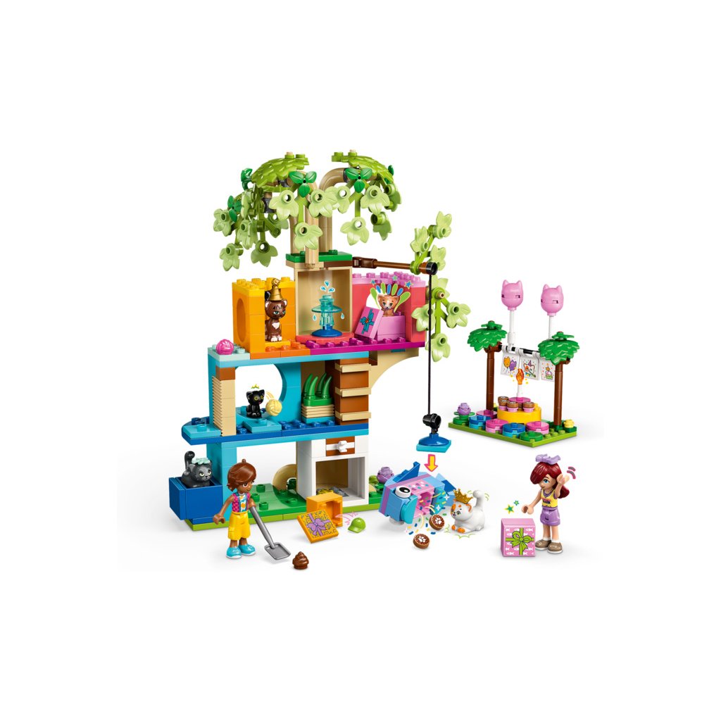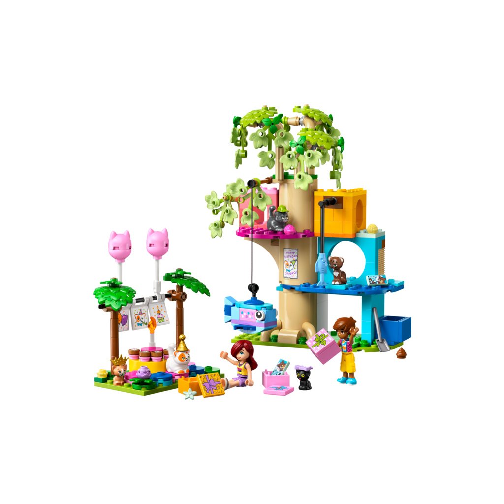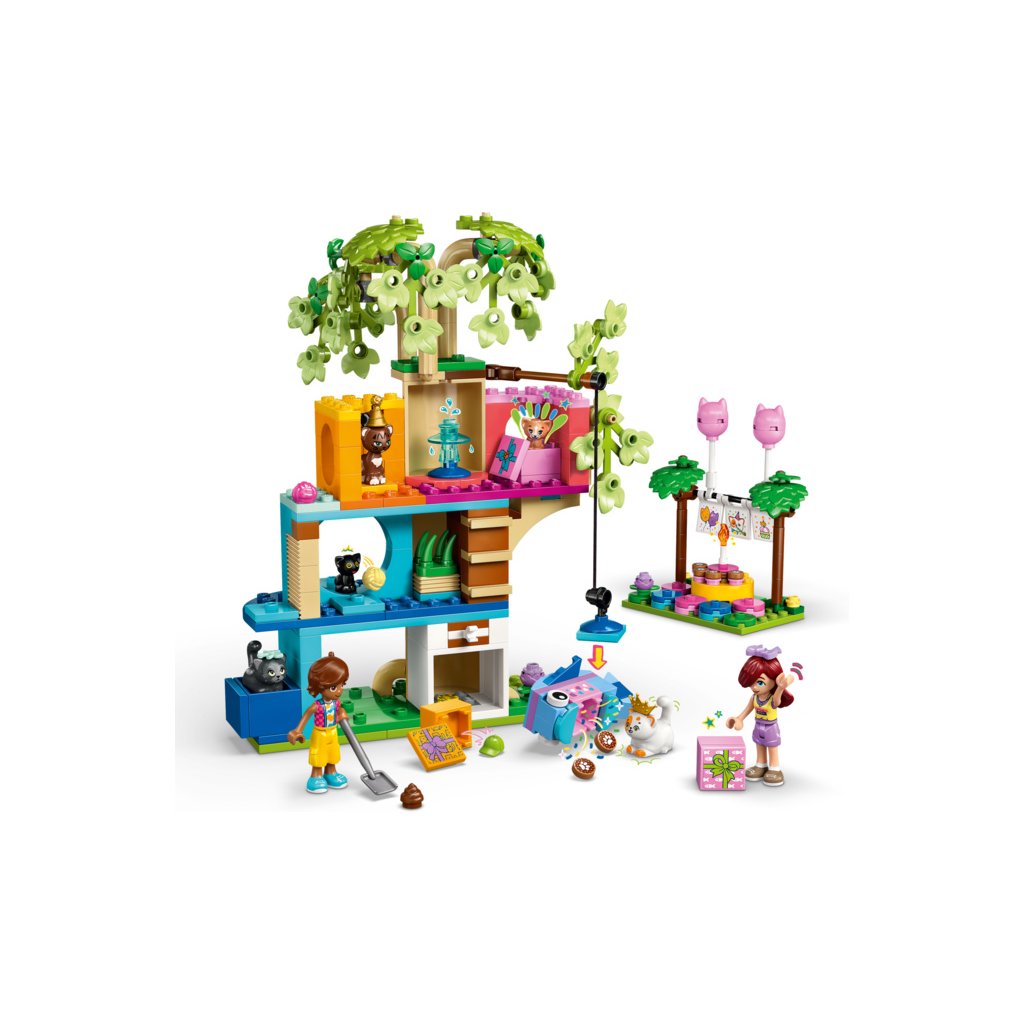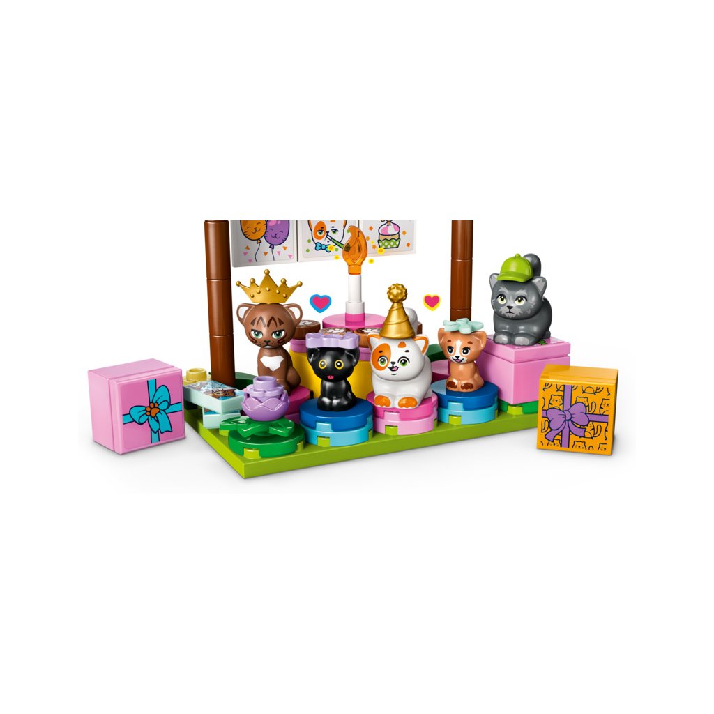 - Stavebnice pro děti, které milují kočky – Stavebnice LEGO® Friends Kočičí narozeninová oslava a dům na stromě pro holky a kluky od 6 let obsahuje 2 minipanenky a 5 figurek koček pro kreativní hraní