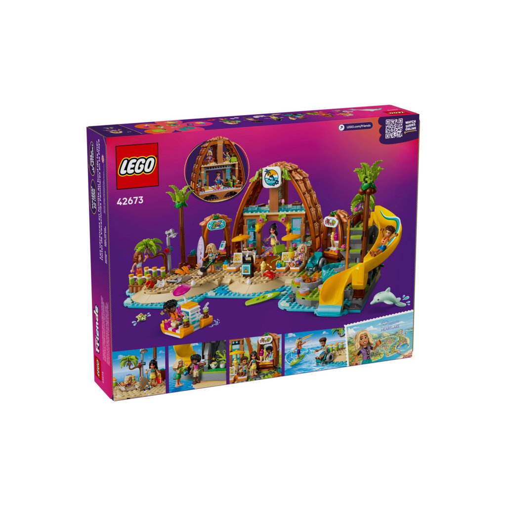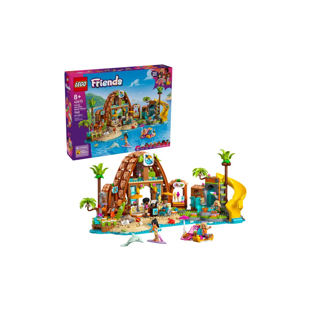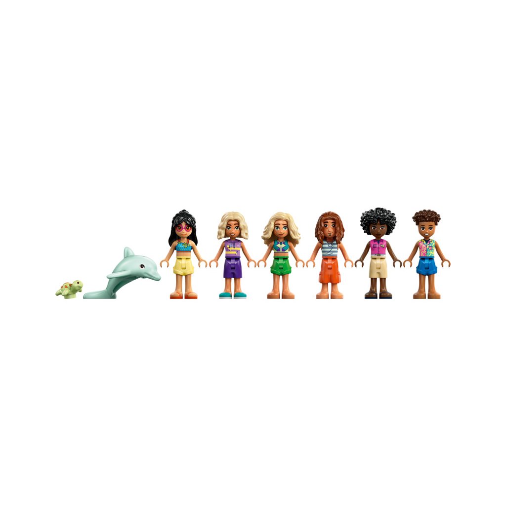 Užijte si rodinnou zábavu na dovolené s touto akční stavebnicí pro holky a kluky od 8 let. Stavebnice LEGO® Friends (42673) Rodinná dovolená u pláže je plná příběhů a obsahuje 6 minipanenek LEGO Friends, figurku delfína a želvy a doplňky pro kreativní hraní.