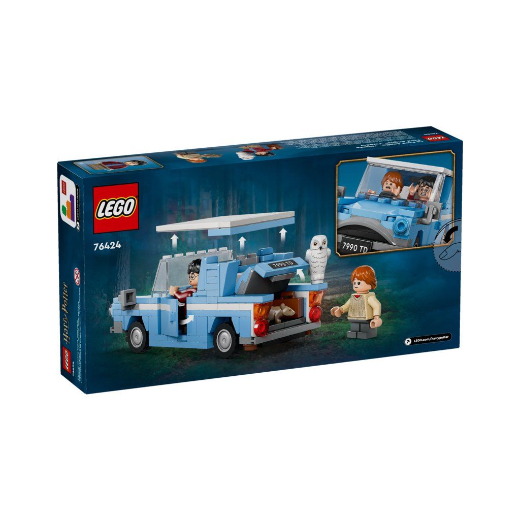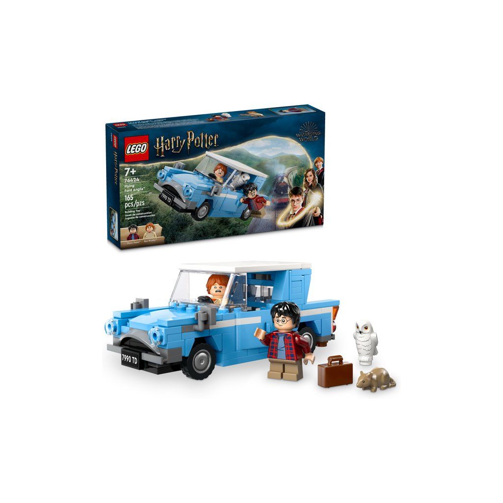 Potěšte děti od 7 let fantastickou stavebnicí Létající automobil Ford Anglia™ (76424), se kterou si připomenou napínavou cestu Harryho Pottera a Rona Weasleyho do Bradavic. Součástí tohoto dobrodružného modelu z kostek LEGO® jsou otevírací dveře a odnímatelná střecha, takže minifigurku Harryho Pottera a Rona Weasleyho i figurku sovy Hedviky snadno usadíte dovnitř. V kufru je místo na zavazadlo, Harryho a Ronovu hůlku a vejde se sem také Ronova krysa Prašivka.