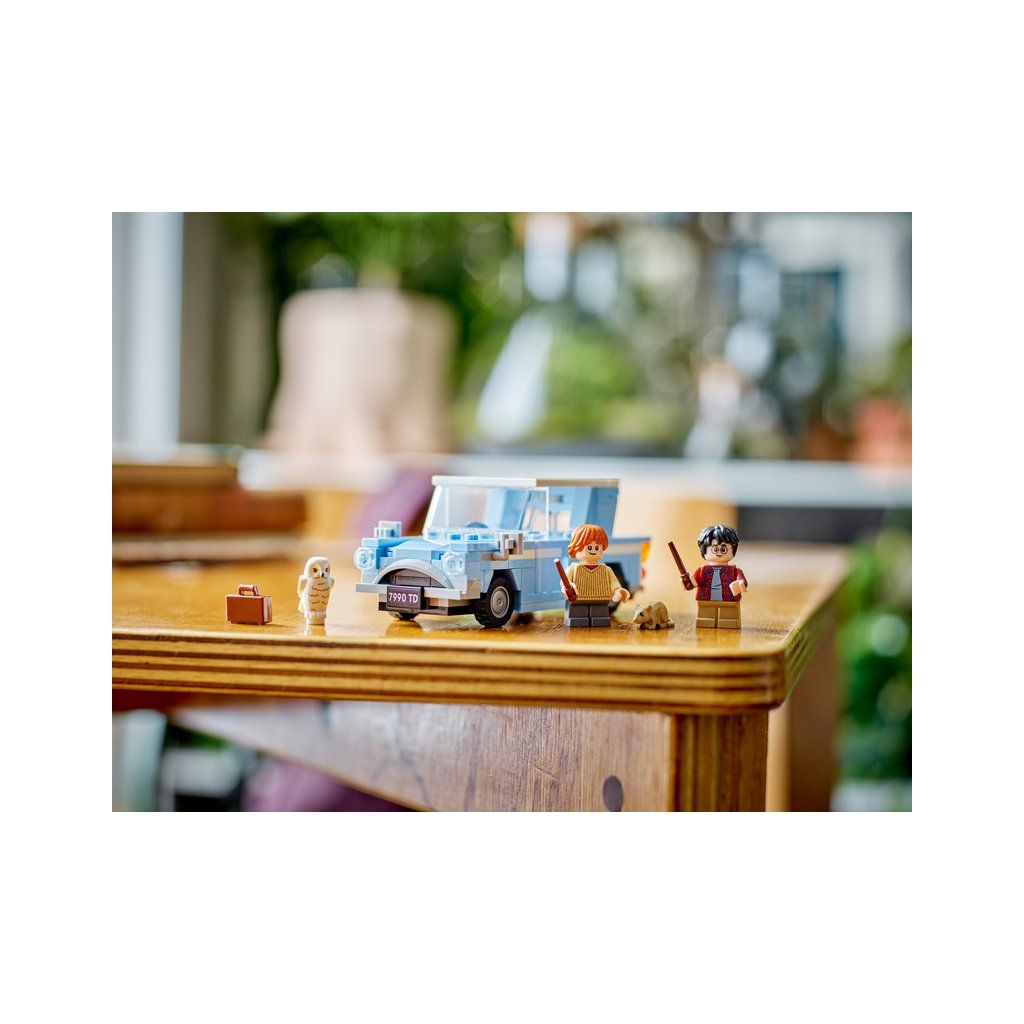 - Model vozu Ford Anglia – Součástí jsou otevíratelné dveře, odnímatelná střecha, sedadla pro 2 minifigurky, zadní místo pro Hedviku a otevírací kufr s míst em na zavazadlo, hůlky a Prašivku