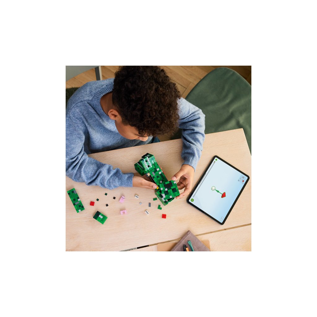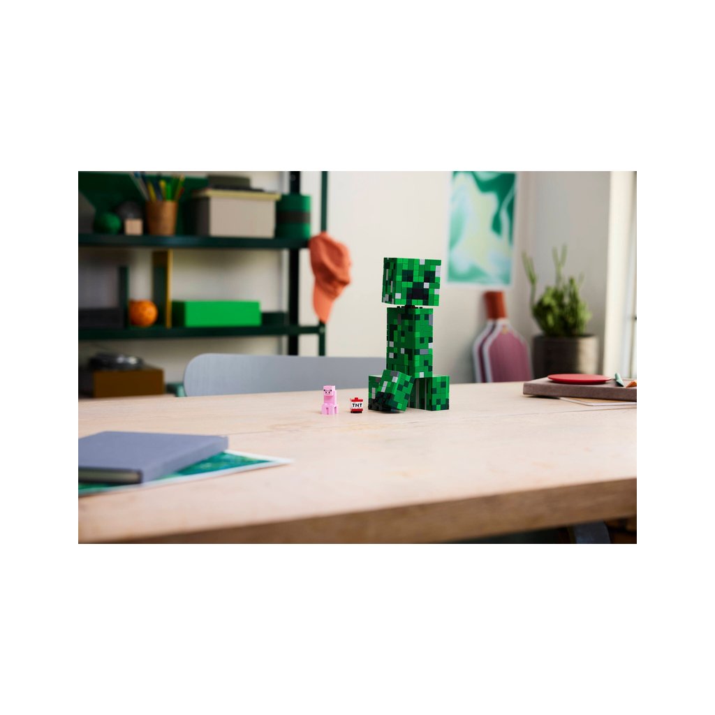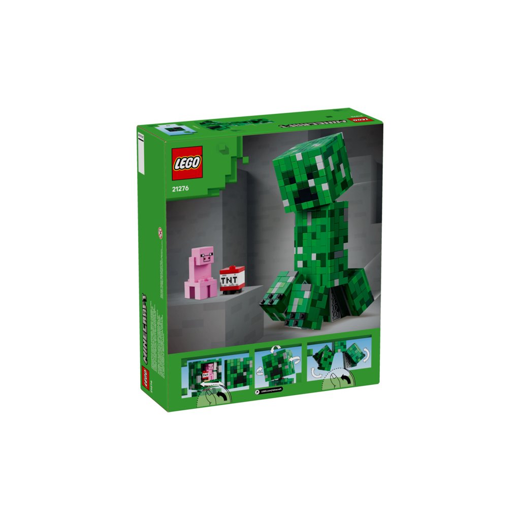 Tato sestavitelná replika Creepera ze světy hry z Minecraft měří přes 21 cm na výšku. Má 4 pohyblivé nohy a hlavu, která se pohybuje ze strany na stranu a naklání se nahoru a dolů. Přední část hlavy figurky LEGO Minecraft Creepera lze oddělit a odhalit vnitřní prostor, který obsahuje první verzi Creepera a dílek TNT. Pro ještě větší digitální zábavu stavitelé můžou přibližovat a otáčet modely ve 3D a sledovat postup pomocí zábavné a intuitivní aplikace LEGO Builder. Stavebnice obsahuje 665 dílků.