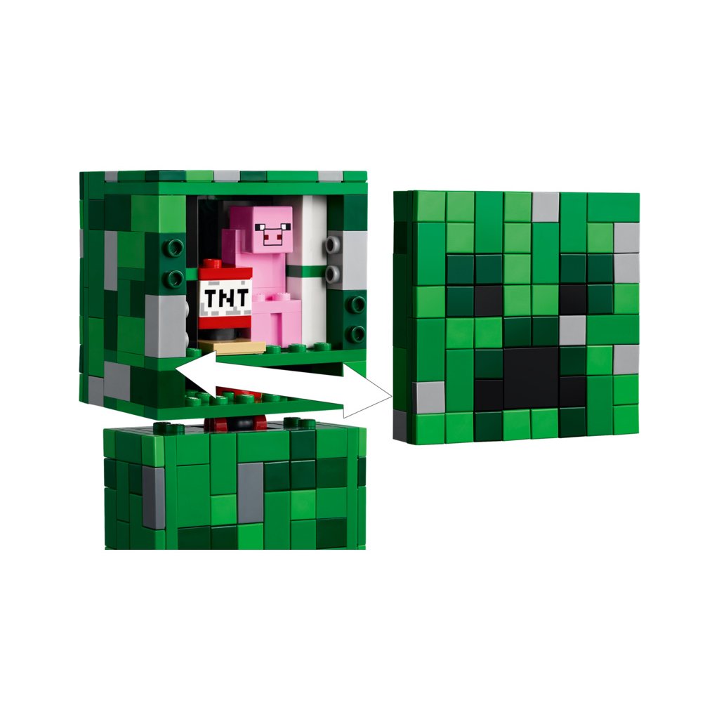 - Skryté překvapení – Přední část hlavy figurky LEGO® Minecraft® The Creeper™ lze oddělit a odhalit interiér s miniaturní první verzí Creepera a dílkem TNT