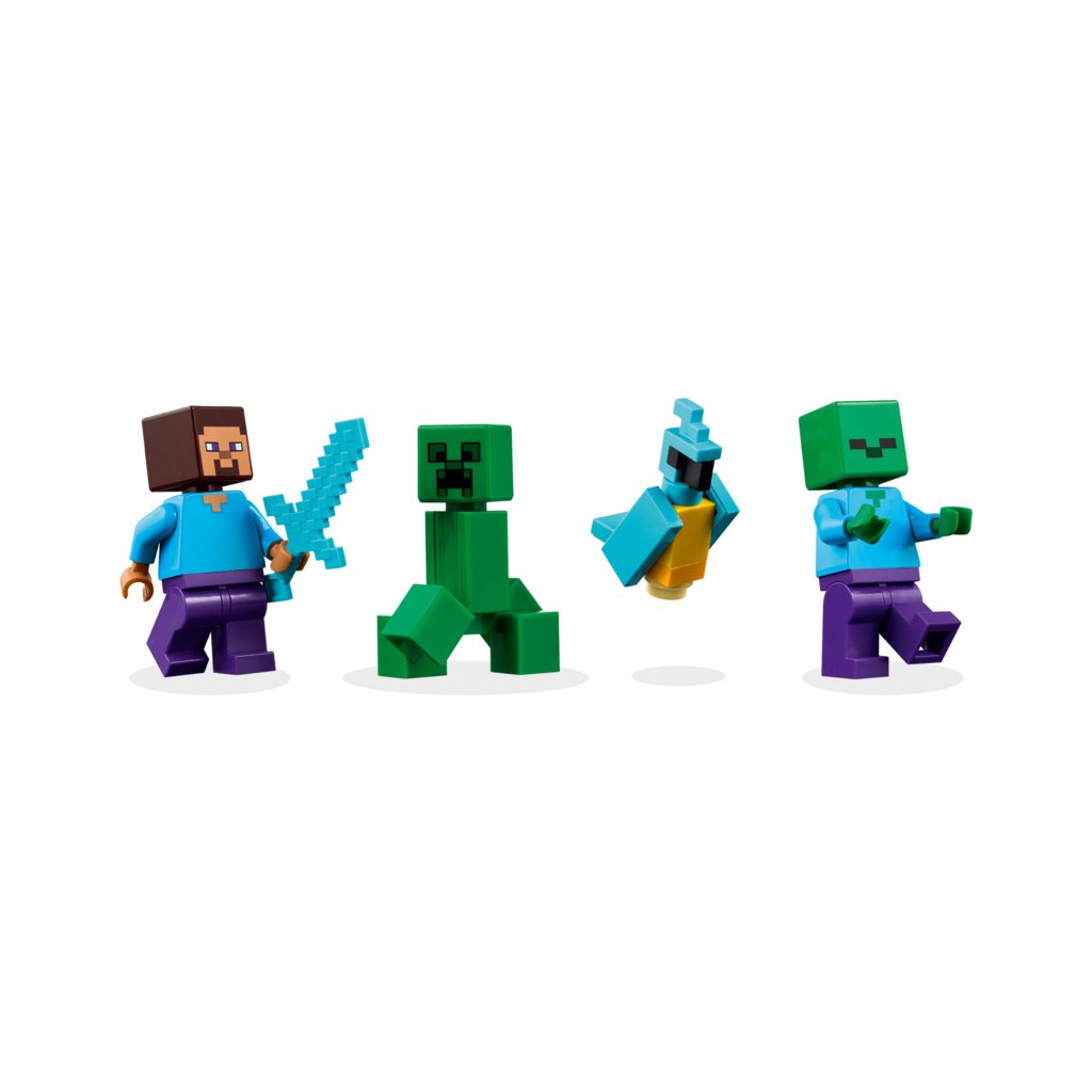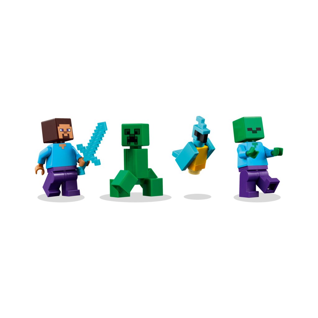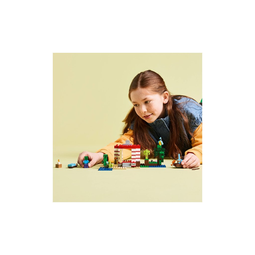 Sestavitelný dům se nachází v biomu džungle v Minecraftu a vypadá jako velká verze ikonického TNT ve hře. Spínač na boku umožňuje dětem aktivovat funkci výbuchu TNT, která vyhodí do povětří celý dům. Až se usadí prach, děti můžou dům znovu postavit, aby se připravily na další dobrodružství. Minifigurky Stevea, Creepera a zombie inspirují ke kreativnímu hraní a akčním bitvám. Mezi autentickými doplňky LEGO Minecraft najdete loď, rybářský prut, rybu, papouška a listí z džungle. Aplikace LEGO® Builder dětem přináší ještě větší porci zábavy díky funkci přibližování a otáčení modelů ve 3D. Stavebnice obsahuje 287 dílků.