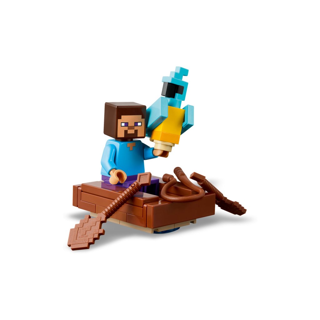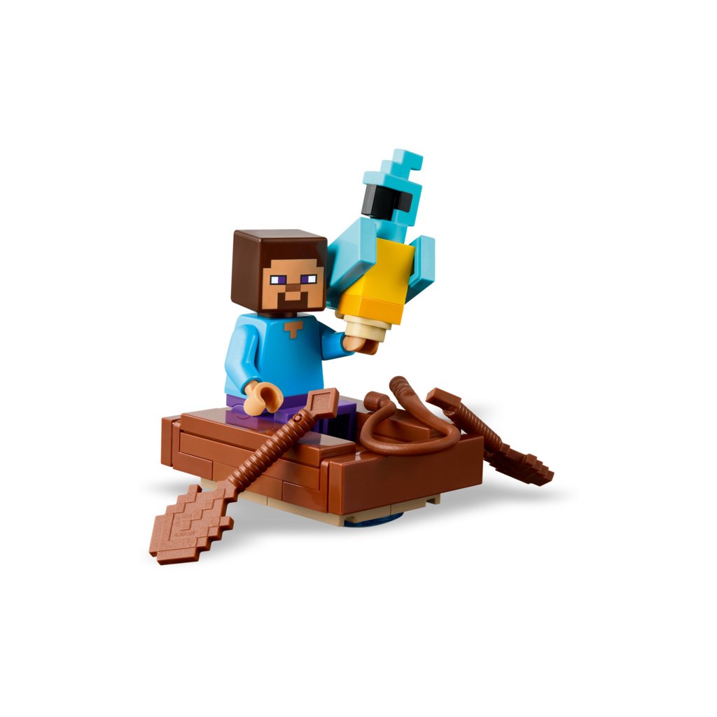 - Sběratelský kousek ze hry Minecraft® – Stavebnice obsahuje minifigurku Stevea, Creepera a zombie a řadu doplňků včetně ryby, rybářského prutu a papouška, které děti inspirují k nápaditému hraní
