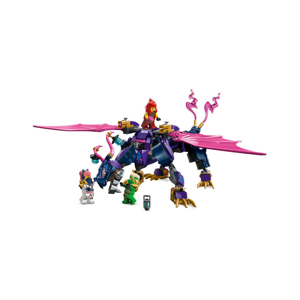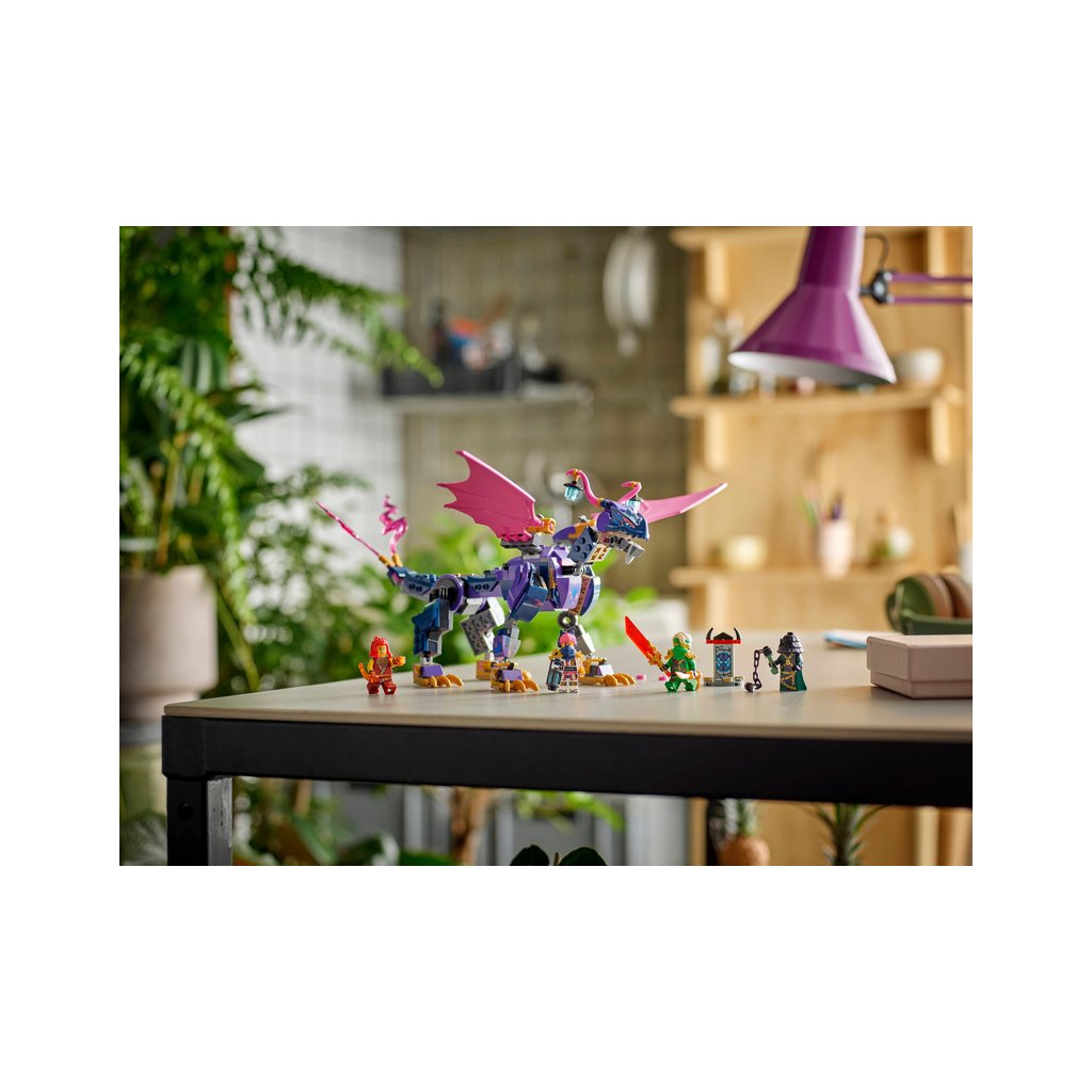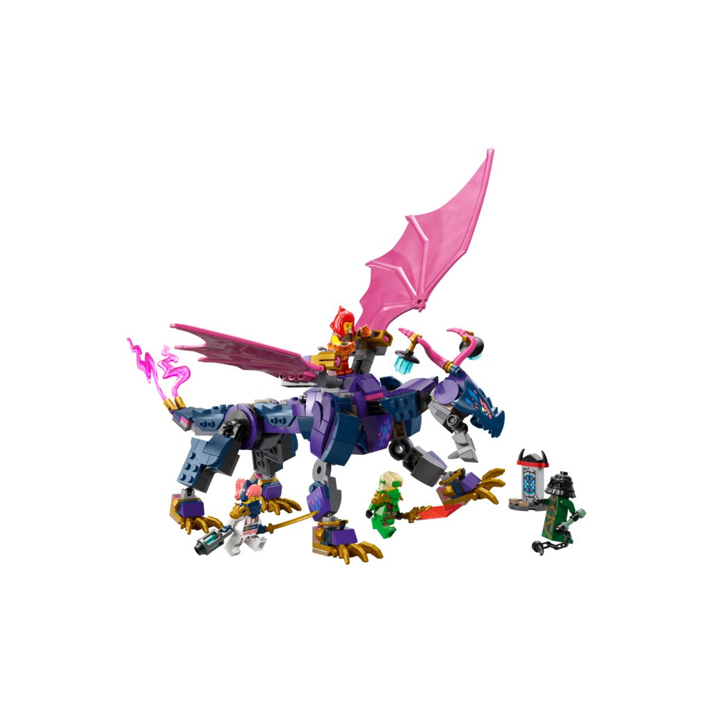 Se stavebnicí LEGO® NINJAGO® (71842) Rontu – Pán draků si fanoušci nindžů od 7 let připomenou akční scény z 3. řady televizního seriálu NINJAGO Dračí povstání. Tato stavebnice pro děti obsahuje model draka s pohyblivým ocasem, nohama, křídly, hlavou a čelistí, 2 pozicemi na zádech pro umístění minifigurky a vystřelovačem pod každým křídlem.